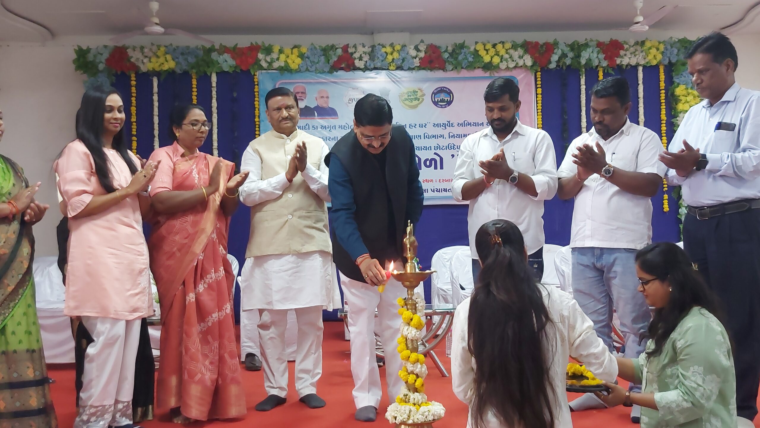 સાંપ્રત સમયની જીવન અને ખોરાક શૈલીને કારણે આજે માનવી અનેક એવા અસાધ્ય રોગોના શિકાર બની રહ્યો છે,ત્યારે ભારતની હજારો વર્ષ જૂની આયુર્વેદ પદ્ધતિને લોકો ફરી અપનાવે અને રોગોથી કાયમી મુક્તિ મેળવી સ્વસ્થ અને નિરોગી રહે તે માટે આઝાદીકા અમૃત મહોત્સવ તેમજ હર દિન હર ઘર આયુર્વેદ અભિયાન અંતર્ગત ગુજરાત સરકારના આરોગ્ય અને પરિવાર કલ્યાણ વિભાગ નિયામક શ્રી,આયુષ્યની કચેરી ગાંધીનગર અને છોટાઉદેપુર જિલ્લા પંચાયત આયુર્વેદ શાખા દ્વારા છોટાઉદેપુરના ધારાસભ્ય રાજેન્દ્રસિંહ રાઠવા ની અધ્યક્ષતામાં નગરના દરબાર હોલ ખાતે આયુષ મેળાનું આયોજન કરવામાં આવ્યું હતું,જેમાં આયુર્વેદ વિભાગના નિષ્ણાતો અને જિલ્લા ભાજપ મહામંત્રી પ્રો.શંકરભાઈ રાઠવાએ  ઉપસ્થિત જનમેદની ને આયુર્વેદની  મહ્ત્વતા સમજાવી હતી,કાર્યક્રમની સાથે જિલ્લા આયુર્વેદ શાખાના પ્રોગ્રામ ઓફિસર ડો.પારુલ વસાવા દ્વારા આયુર્વેદ કેમ્પનું પણ આયોજન કરવામા આવ્યું હતું જેનો મોટી સંખ્યામાં લોકોએ લાભ લીધો હતો.