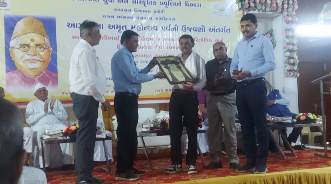 ના રોજ આયોજિત થયેલા જે કાર્યક્રમમાં શેઠ શ્રી ત્રિ. મા લાઈબ્રેરી ને ઉત્તમ ગ્રંથાલય અને ગ્રંથપાલ શ્રી અલારખભાઈ ને ઉત્તમ ગ્રંથપાલ તરીકે એવોર્ડ પસંદગી થયેલ ગુજરાત સાહિત્ય અકાદમીના શ્રી જયેન્દ્ર જાદવ સાહેબ, ઉપ સચિવ શ્રી દિપક પટેલ સાહેબ