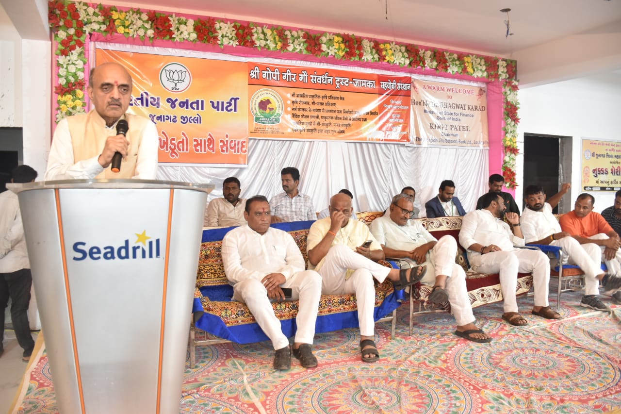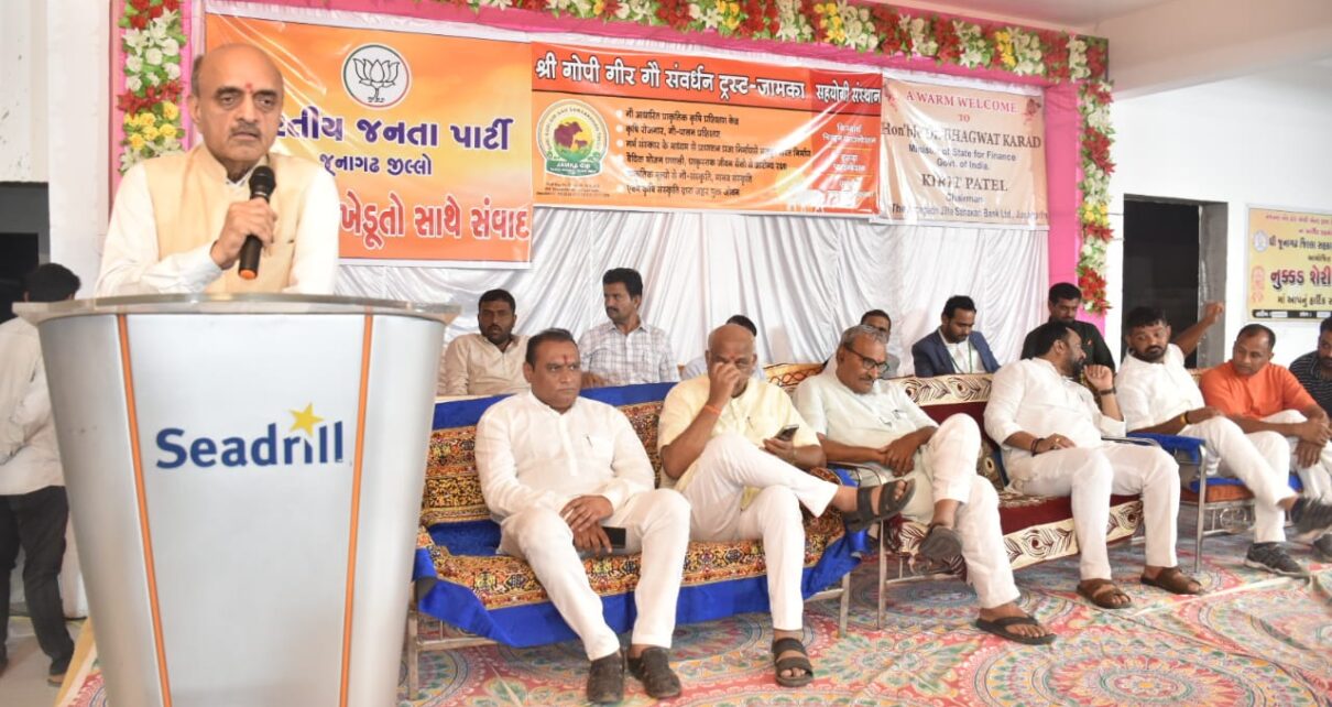 કેન્દ્ર સરકારના રાજ્યકક્ષાના નાણામંત્રી શ્રી ડો. ભગવત કરાડે જૂનાગઢ તાલુકાના જામકા ખાતે ગીર ગાય ગૌશાળાની અને ગીર ગાય આધારિત ફાર્મની મુલાકાત લઇ ખેડૂતોને ગાય આધારિત ખેતી કરવા પ્રોત્સાહન આપ્યું હતું.