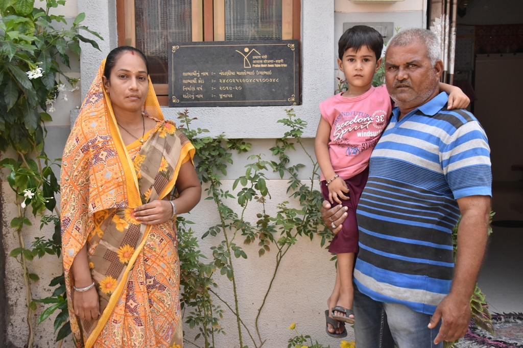 જૂનાગઢ શહેરના શ્રમજીવી નગરમાં ૩૦ વર્ષથી કાચા નળિયાવાળા મકાનમાં રહેતા માલદેભાઈ ઉગાભાઇ નંદાણીયા એ પ્રધાનમંત્રી આવાસ યોજના શહેરી થકી ઘરના ઘરનું સ્વપ્ન પૂર્ણ કર્યું છે