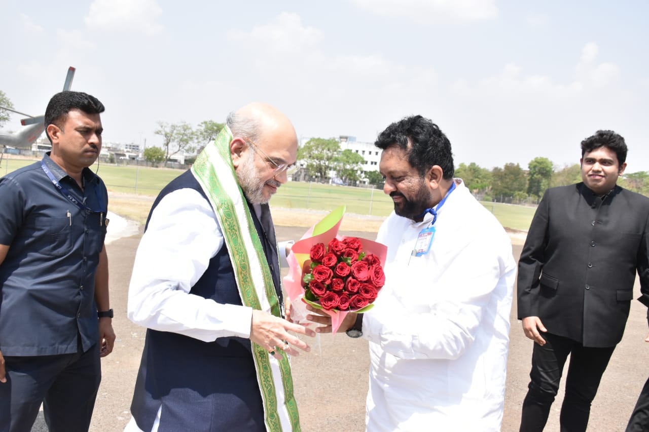 જૂનાગઢ હેલિપેડ ખાતે કેન્દ્રીય ગૃહમંત્રી શ્રી અમિતભાઇ શાહનું આગમન થતા એ.પી.એમ.સી. ના ચેરમેન અને જિલ્લા ભાજપના પ્રમુખ શ્રી કિરીટ ભાઇ પટેલ, આઈજીપી મયંકસિંહ ચાવડા, જિલ્લા પોલીસ વડા રવિ તેજા વાસમશેટ્ટી, કલેક્ટર શ્રી રચિત રાજ, ધારાસભ્ય શ્રી સંજય ભાઇ કોરડીયા, ડેપ્યુટી મેયર ગીરીશભાઈ કોટેચા, શહેર ભાજપ પ્રમુખ પનિતભાઇ શર્મા સહિતના આગેવાનોએ ઉષ્માભર્યુ સ્વાગત કર્યું હતું.