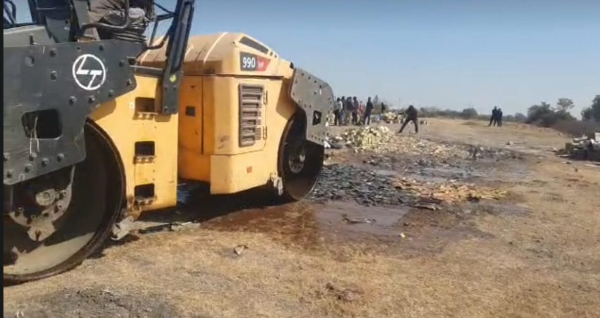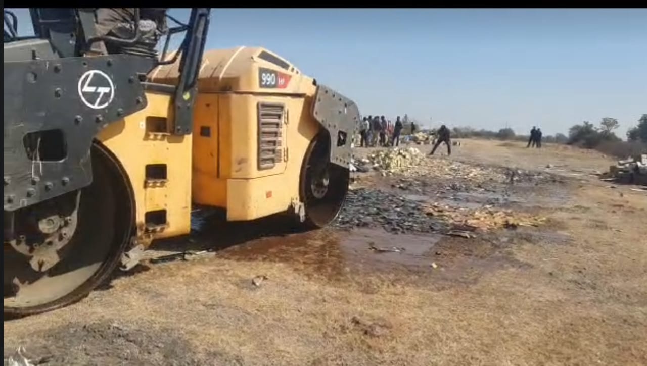 ગાંધીજીના ગુજરાતમાં દારૂબંધી હોવા છતાં પણ બુટલેગરો ગુજરાતમાં બેફામ બની ગયા છે. રાજ્યની સરહદમાં જ્યાં ત્યાંથી દારૂ ઘૂસાડવા માટે તેઓ તત્પર છે. આવામાં રાજકોટ જિલ્લાના જેતપુર,જેતપુર તાલુકા અને વીરપુર પોલીસ સ્ટેશન વિસ્તારમાંથી પકડાયેલા દારૂના જથ્થાને વિવિધ અધિકારીઓની હાજરીમાં નાશ કરવામાં આવ્યો છે. આમ જેતપુર ડિવિઝન કચેરી હેઠળ આવતી ત્રણ પોલીસ સ્ટેશનમાં પકડાયેલા લાખો રૂપિયાના દારૂના જથ્થા પર બુલડોઝર ફેરવવામાં આવ્યું હતું.
