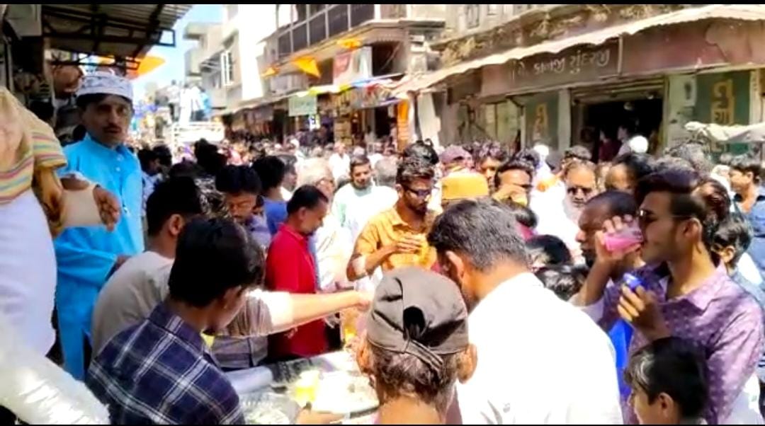 મુસ્લિમ રોજેદાર બિરાદરોએ યાત્રિકોને પીવડાવ્યું શરબત