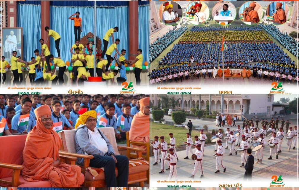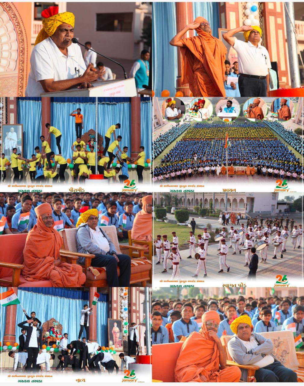 ગુરુકુલના વિવિધ વિભાગો તરફથી સુંદર રંગારંગ કાર્યક્રમ વક્તવ્યો અને દેશભક્તિ ગીત અને પીરામીડો રજૂ થયા હતા.