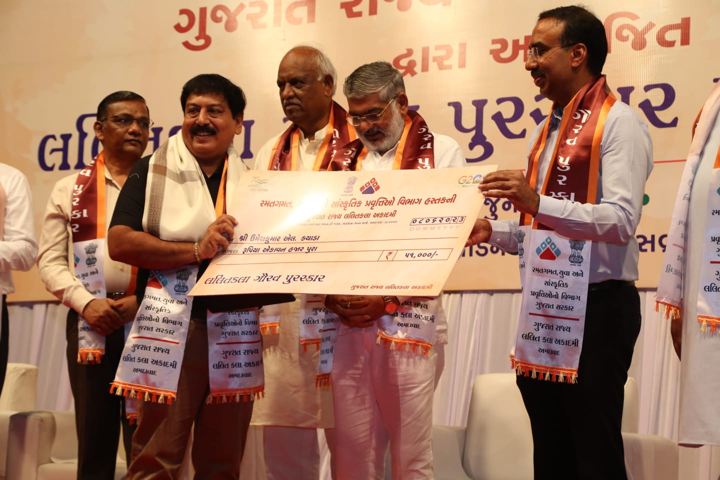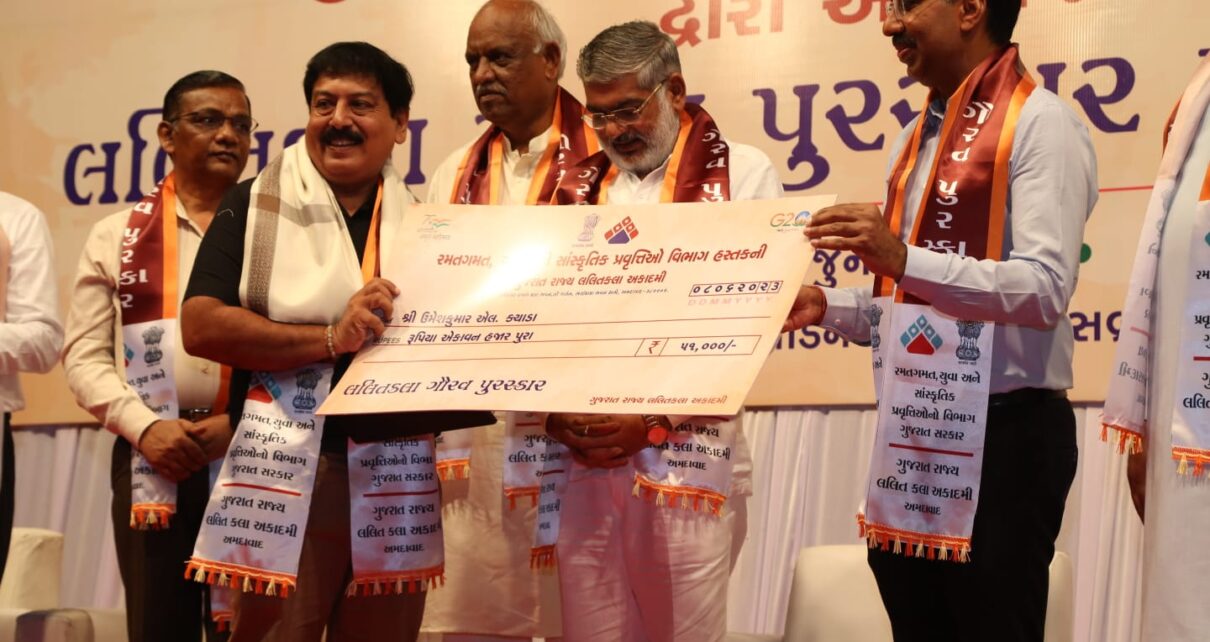 રમત ગમત યુવા અને સાંસ્કૃતિક પ્રવૃત્તિઓ વિભાગ હસ્તકની ગુજરાત રાજ્ય લલિતકલા અકાદમી દ્વારા આયોજિત લલિત કલા ગૌરવ પુરસ્કાર પ્રદાન સમારંભ ઠાકોરભાઈ દેસાઈ હોલ અને ચિત્ર પ્રદર્શન રવિશંકર રાવલ કલાભવન ખાતે ૮ જૂન ૨૦૨૩ ના બપોરના આ કાર્યક્રમ યોજાઈ ગયો.
