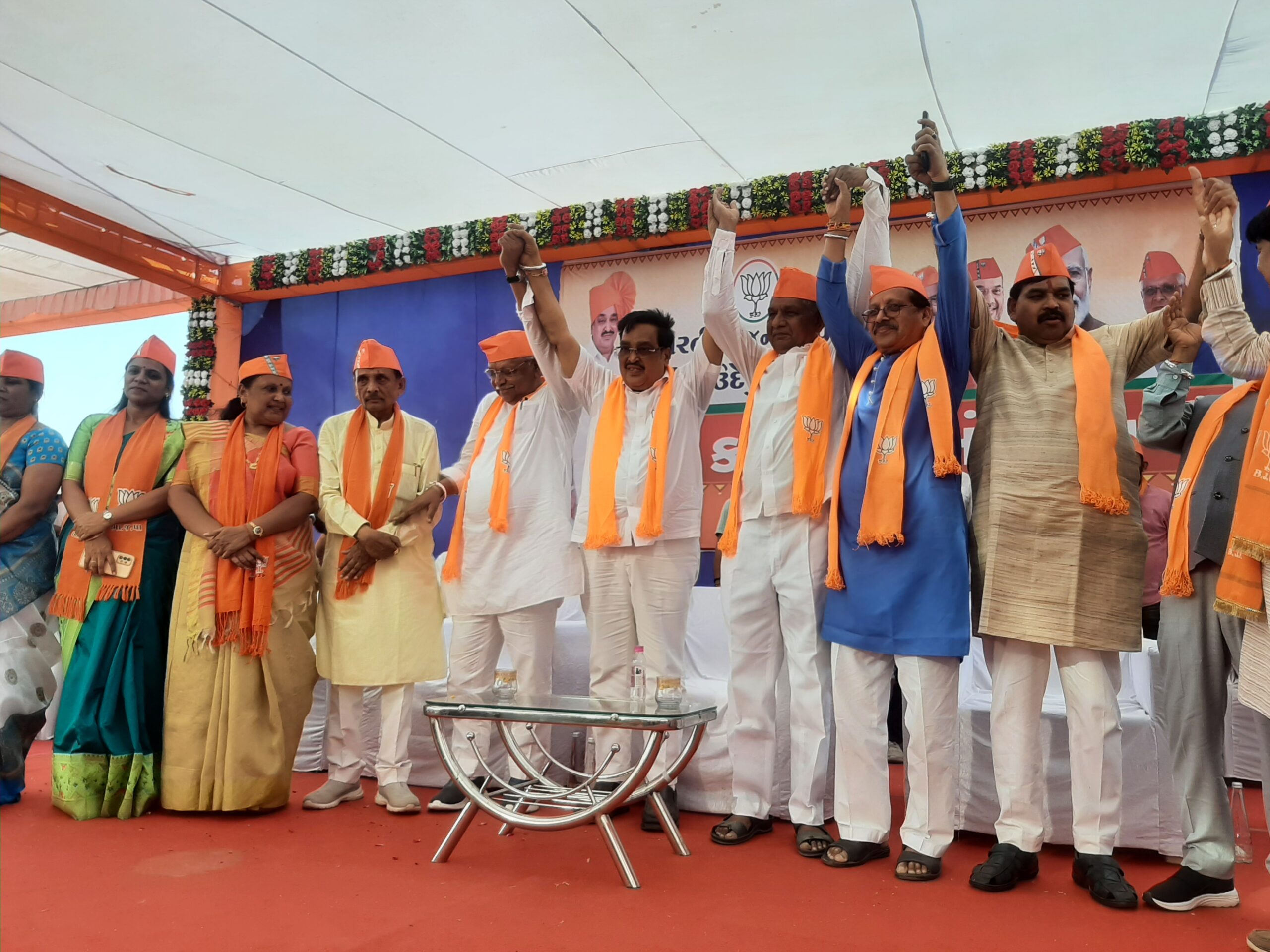 નસવાડીના કેસરપૂરા ખાતે ભાજપા કાર્યકર્તા સંમેલન યોજાયું હતું જેમાં 4 વાર ધારાસભ્ય તરીકે રહી ચૂકેલા ધીરુભાઈ ભીલએ ભાજપ પ્રદેશ પ્રમુખ સી.આર.પાટિલના હસ્તે ભાજપનો ખેસ ધારણ કર્યો હતો જેમની સાથે જિલ્લા પંચાયત સદસ્ય,7 તાલુકા પંચાયત સદસ્ય 8 એપીએમસી ડિરેક્ટરો 26 ગ્રામ પંચાયતના સરપંચો સહિત 2 હજાર વધુ કોંગ્રેસના કાર્યકરો ભાજપમાં જોડાયા હતા આ સાથે સંખેડા વિધાનસભામાં કોંગ્રેસ નું અસ્તિવ જોખમમાં મુકાયું છે કોંગ્રેસમાંથી સંખેડા વિધાનસભાની ચૂંટણી લડેલા ધીરુભાઈ ભીલ અને ભાજપમાંથી ચૂંટણી લડેલા અભેસિંગ તડવી બંને નેતાઓ એક સાથે સ્ટેજ ઉપર ભેટી પડ્યા હતા વંદે માતરમ્ ના કેસરપૂરા માં ગુંજી ઉઠ્યા હતા સી પાટિલ એ નિવેદનમાં બાબા બાગેશ્વર ઉપર સી.આર.પાટીલની પ્રતિક્રિયા આપતા કહ્યું કે કોંગ્રેસ શુ કે છે એનો મારે જવાબ નહીં આપવો જોઈએ અને ધર્મમાં આસ્થા રાખવી એ તો સારી વાત છે કોઈપણ વ્યક્તિ ધર્મમાં આસ્થા રાખે છે એટલે એ નીતિ પર ચાલે છે કોંગ્રેસનો નાશ થયો છે એનું કારણ એ જ છે કે એ ધર્મમાં આસ્થા રાખતી નથી , ફક્ત ઇલેક્શન આવે છે ત્યારે મંદિરોમાં જાય છે