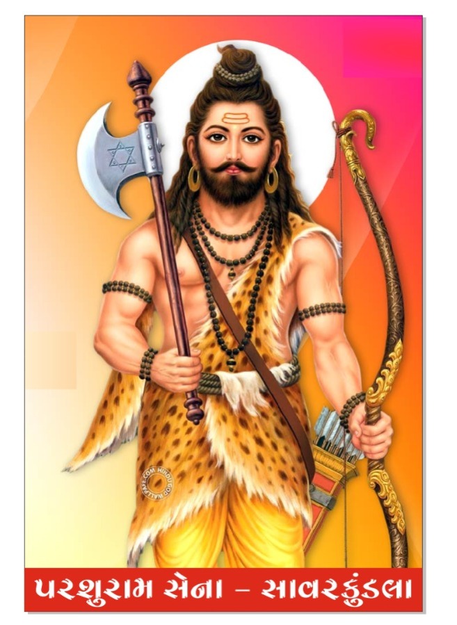 ———————————————————————પરશુરામ સેના સાવરકુંડલા દ્વારા ભગવાન વિષ્ણુનાં છઠ્ઠા અવતાર, ભૂદેવોનાં આરાધ્ય દેવ ચિરંજીવી ભગવાન પરશુરામદાદાના પ્રાગટ્ય મહોત્સવની તા ૨૨/૪/૨૦૨૩નાં રોજ ભગવાન પરશુરામદાદાનો પ્રાગટ્ય દિવસ છે. ત્યારે પરશુરામ સેના ઉજવણી કરવા આતુર બન્યું છે,