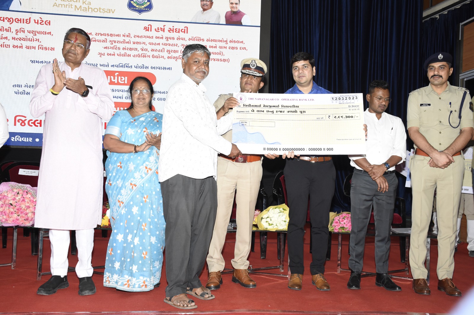 રમેશભાઈ મૂંગરા, શહેર ભાજપ પ્રમુખ શ્રી વિમલભાઈ કગથરા તથા બહોળી સંખ્યામાં લાભાર્થી ભાઈઓ બહેનો તથા પોલીસ
