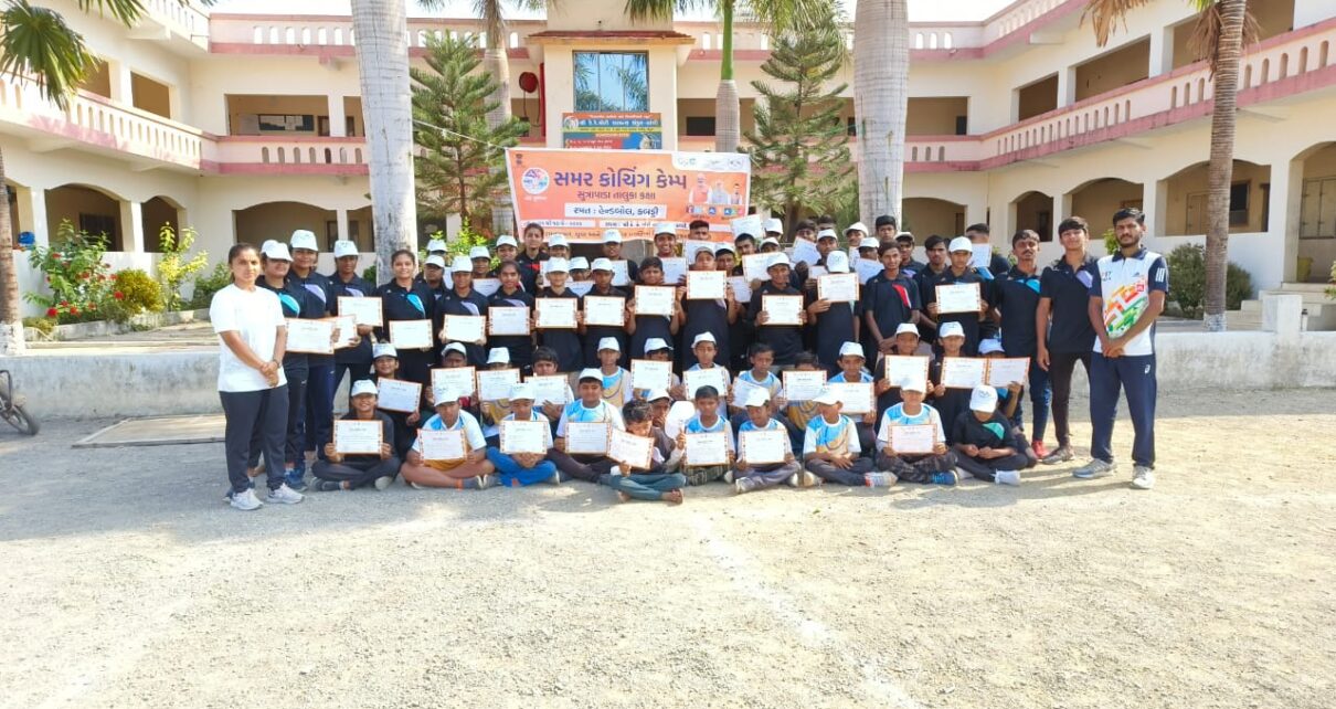 .પ્રાંચી તીર્થ ખાતે આવેલ શ્રી કે. કે. મોરી હાઈસ્કુલ ખાતે સમર કોચીગ કેમ્પ યોજાયો હતો રમત ગમત યુવા અને સાંસ્કૃતિક પ્રવૃત્તિઓ ના વિભાગ સ્પોર્ટસ ઓથોરિટી ઓફ ગુજરાત અને જિલ્લા રમત પ્રશિક્ષણ કેન્દ્ર ગીર સોમનાથ ના સંયુક્ત ઉપક્રમે હેન્ડબોલ, કુસ્તી તેમજ કબડ્ડી રમતનું આયોજન કરવામાં આવ્યું હતું જેમાં ત્રણ રમતોમાં નિષ્ણાંત કોચ દ્વારા ખેલાડીઓને ટ્રેનિંગ આપવામાં આવી હતી આજે તેમનો સમાપન સમારંભ યોજાયો હતો જેમાં રમતવીરોને પ્રમાણપત્ર, ટીશર્ટ સહિત આપી પ્રોત્સાહિત કરવામાં આવ્યા હતા. પ્રાચી તેમજ આજુબાજુ ના ગ્રામ્યવિસ્તારો માંથી બહોળી સંખ્યામાં રમતવીરો આ સમર કોચિંગ કેમ્પમાં જોડાયા હતા