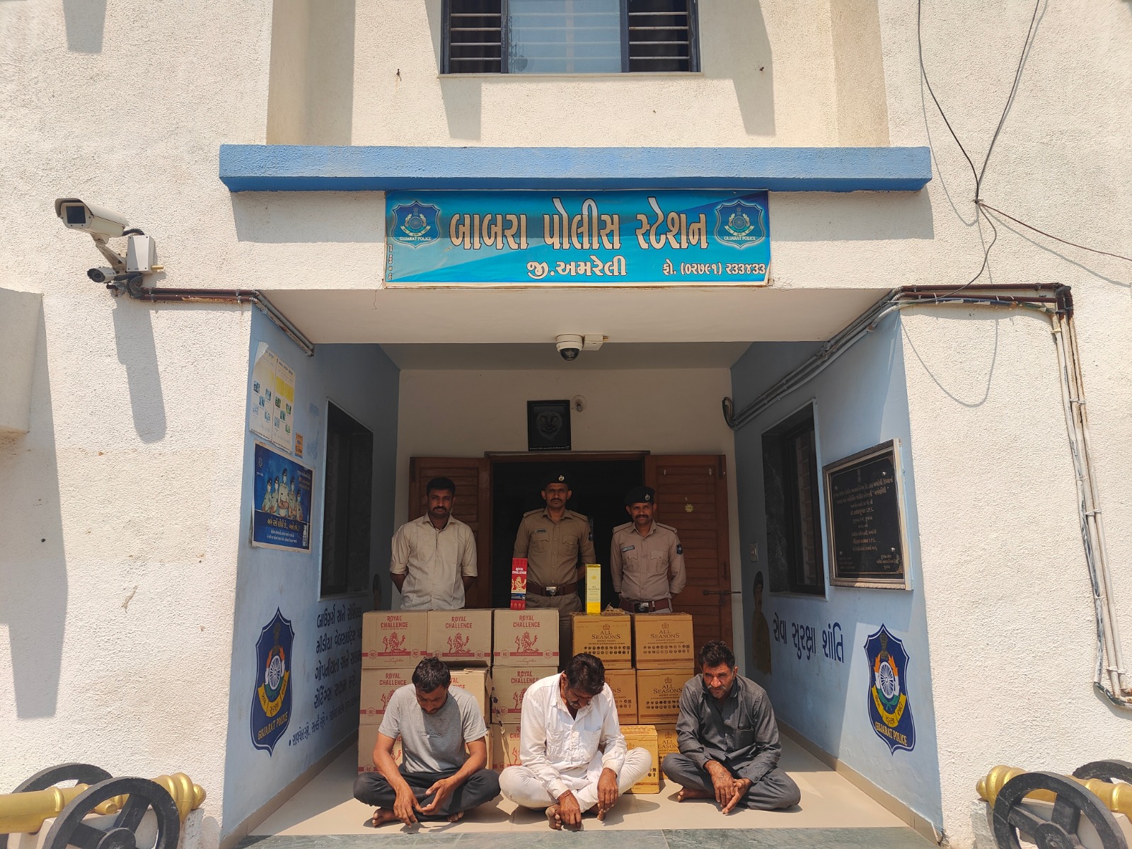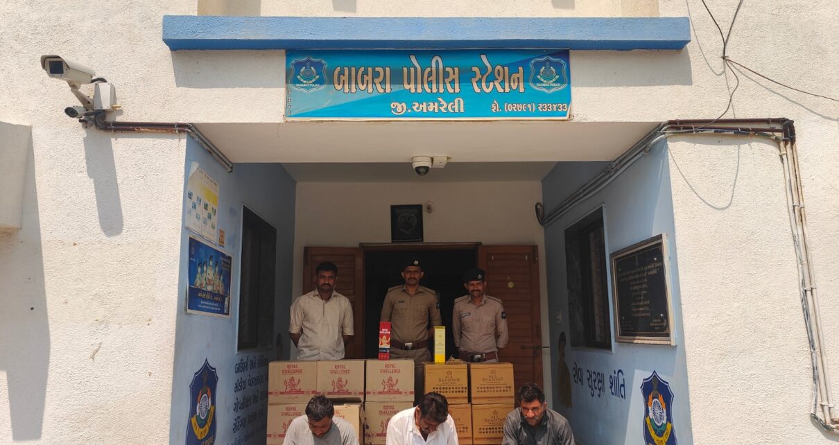 જે અન્વયે આજરોજ બાબરા પોલીસ સ્ટેશનના પો.ઇન્સ. આર.ડી.ચૌધરી સાહેબ તથા બી.પી.પરમાર પો.સબ.ઇન્સ. તથા ડ કોન્સ, ભરતભાઇ પી.ડોડીયા તથા પો કોન્સ હર્ષદભાઇ ભરતભાઇ ડાભી તથા પો.કોન્સ.તુંષારભાઇ કિશોરભાઇ પંડયા તથા આ પો.કોન્સ ગોકળભાઈ મખાભાઈ રાતડીયા એ રીતેના બાબરા પો.સ્ટે હાજર હતા એ દરમ્યાન પો.કોન્સ હર્ષદભાઇ બી.ડાભીનાઓને બાતમી હકિકત મળેલ કે જગાભાઇ નથુભાઇ બાખલકીચા રહે.નાની કુંડળ સૌમવિસ્તાર તા.બાબરા વાળાએ નાની કુંડળ ગામે ઇતરીયા ગામ તરફ જવાના રસ્તે આવેલ પોતાના કબ્જાભોગવટાની વાડીના પડામાં કડબના હગલમાં ગે.કા.રીતે ભારતીય બનાવટનો ઇંગ્લીશ દારૂ રાખેલ છે તેવી હકીકત મળતા બે પંચો સાથે રાખી પો.સ્ટાફ.ના માણસો સાથે હકીકત વાળી જગ્યાએ દરેડ જામખરવાળા ગામ થઇ નાની કુંડળ ગામે ઇતરીયા ગામ તરફ જવાના રસ્તે સીમ વિસ્તારમાં જગાભાઇ નથુભાઇ બાખલકીયાની વાડીએ રેઇડ કરતા ત્રણ ઇસમો હાજર હોય જેમને કોર્ડન કરી બેસાડી દઇ હકીકત વાળી જગ્યાએ રેઇક કરતા અલગ મલગ બ્રાંડની બોટલો જોતા ALL SEASONS લખેલ બોટલો નંગ ૪ તથા ROYAL CHALLENGE ની બોટલો ૧૨૭ મળી કુલ બોટલો ૨૧૧ કી રૂ.૧,૦૮,૪૬૦ તથા હાજર ઇસમો પાસેથી મળી આવેલ મોબાઇલ ફોન નંગ ૦૨ કી.રૂ.૫૫૦૦ મળી કુલ રૂ.૧,૧૩,૯૬૦ નો મુદામાલ તપાસ અર્થે કબ્જે કરેલ છે તેમજ ત્રણ ઇસમો સદરહુ પ્રોહી મુદ્દામાલ સાથે મળી આવેલ હોય જેમના વિરૂધ્ધ ધી ગુજરાત પ્રોહીબીશન એક્ટ કલમ ૬૫(એઈ),૧૧૬(બી), ૮૧ હેઠળ કાર્યવાહી કરેલ.
