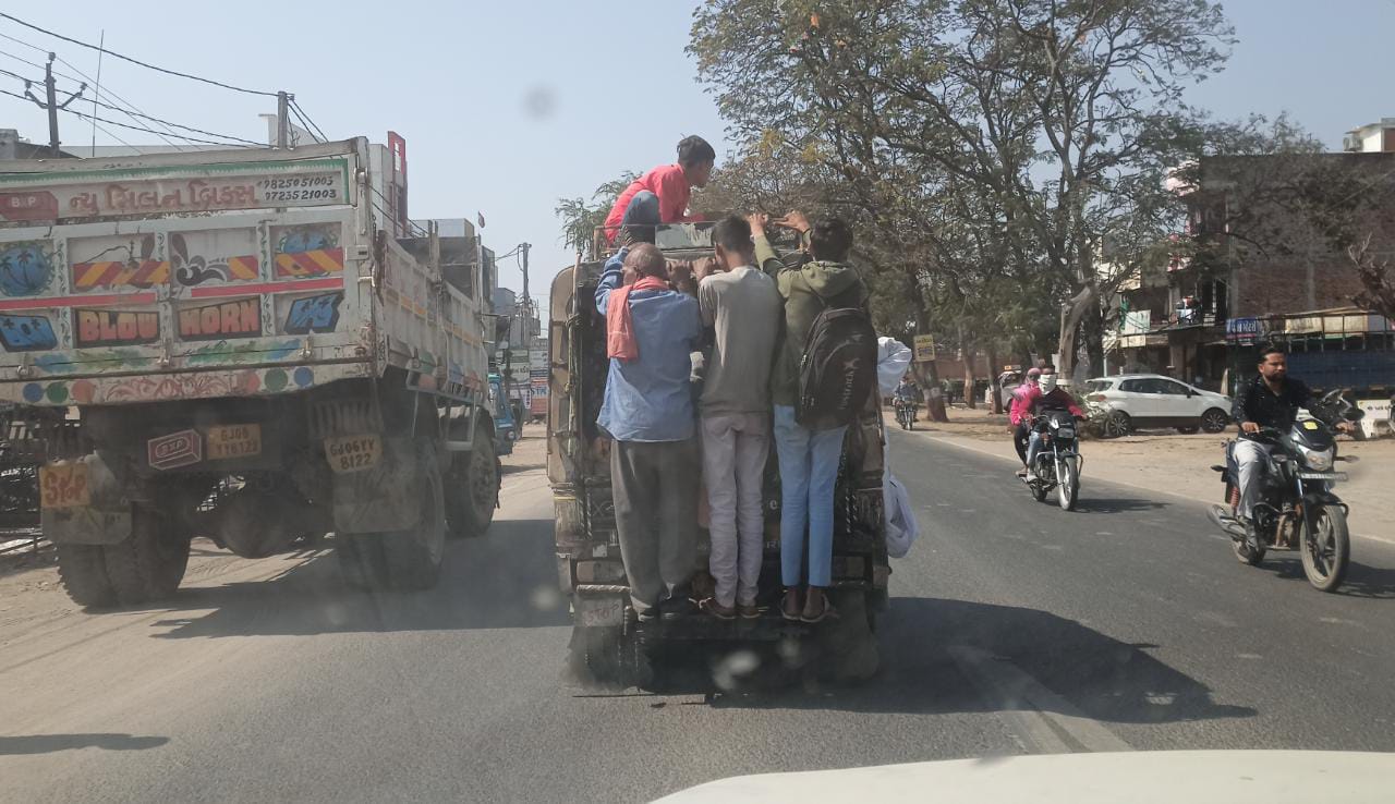 બોડેલી સહિત છોટાઉદેપુર જિલ્લામાં ખાનગી વાહનો માં ઘેટાં બકરા ની જેમ જોખમી મુસાફરી કરતા દ્રશ્યો સામાન્ય બન્યા છે.પણ હાઇવે માર્ગે છકડામાં બાળકો લટકીને કે છત પર બેસીને જોખમી મુસાફરી કરે તે ગંભીર બાબત ગણાય.આવા વાહનો સામે જિલ્લા પોલીસ કેમ ચૂપ છે તે પ્રશ્ન ઉભો છે.