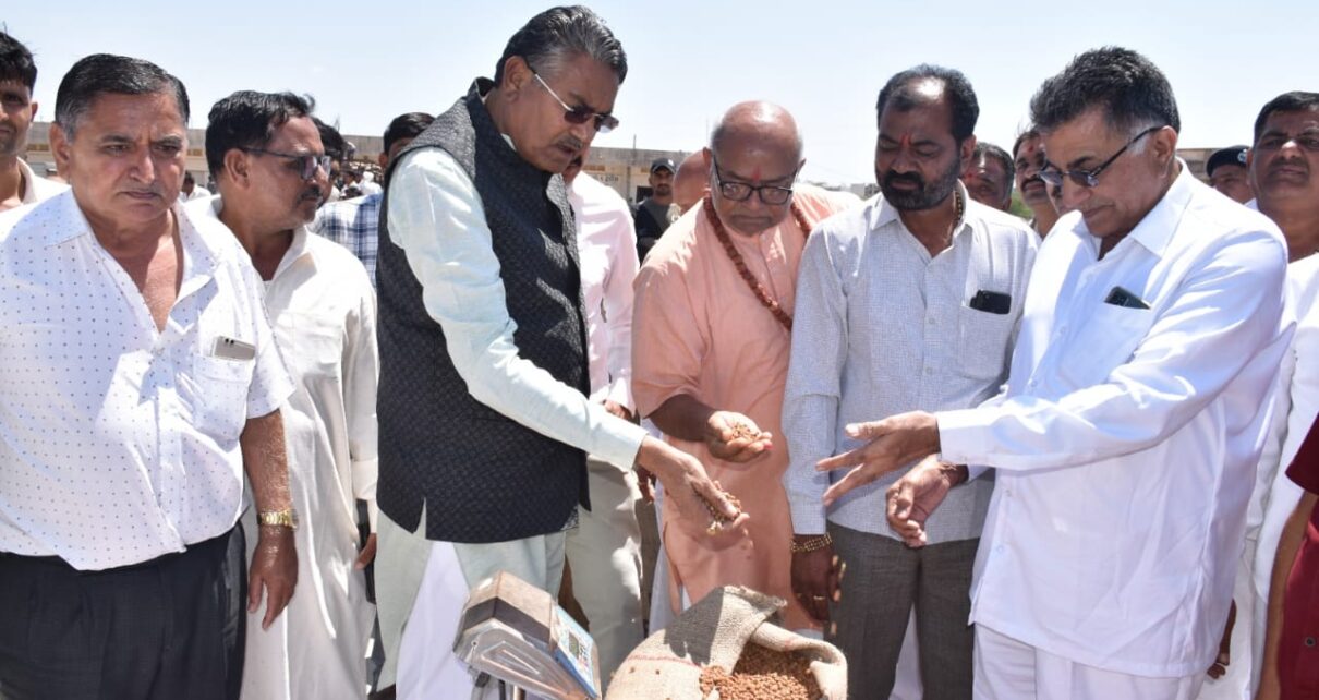 મંત્રીશ્રીએ એ.પી.એમ.સી. ખાતે ચાલી રહેલી ચણાની ખરીદી બાબતે ખેડૂતો સાથે વાર્તાલાપ કર્યો હતો.