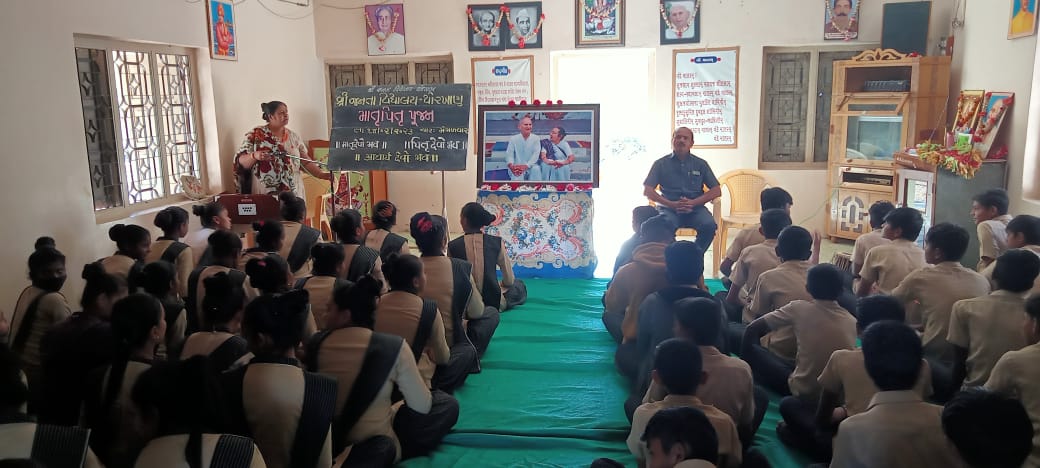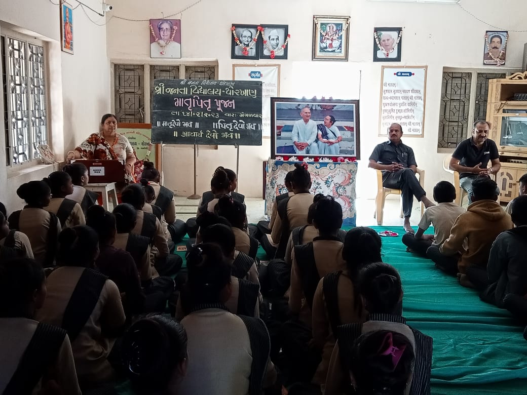 મંગળવારના રોજ જનતા વિદ્યાલય થોરખાણ હાઈસ્કૂલમા માતૃ-પિતૃ પૂજન કરવામા આવેલ