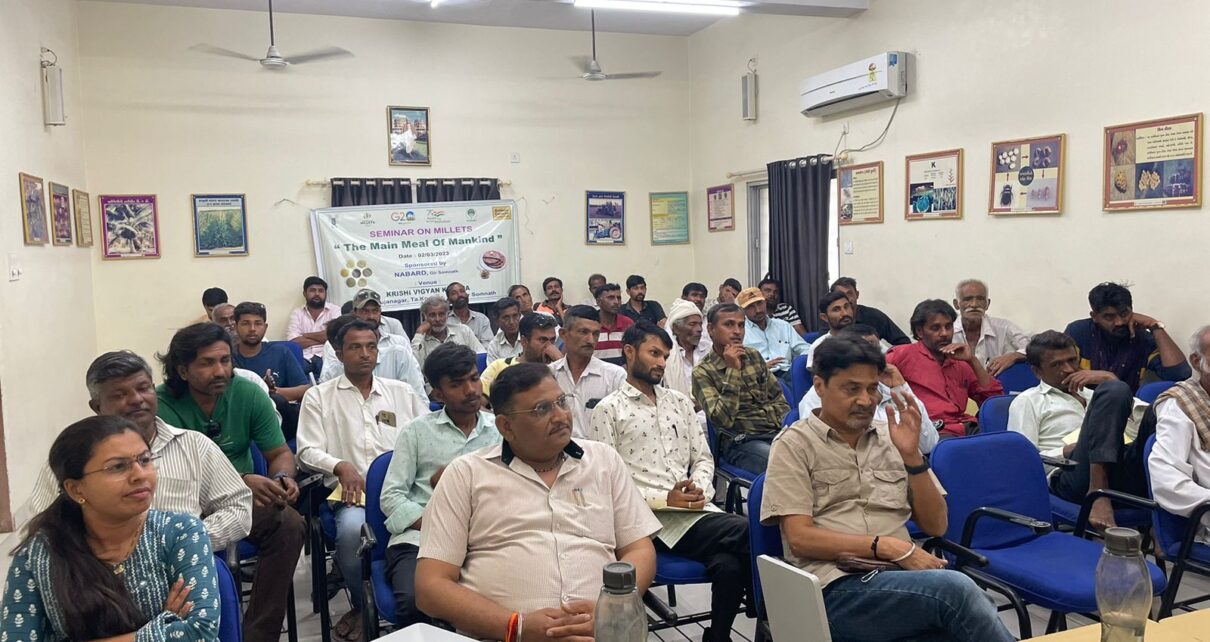 વર્ષ ૨૦૨૩ને આંતરરાષ્ટ્રીય મિલેટ વર્ષ તરીકેની ઓળખ મળી છે ત્યારે કેવીકે ગીર સોમનાથ દ્વારા નાબાર્ડ બેંકના આર્થિક સહયોગ થકી કૃષિ વિજ્ઞાન કેન્દ્ર કોડિનાર ખાતે “મિલેટ: માનવનો મુખ્ય આહાર” થીમ પર એક દિવસીય સેમિનાર યોજાયો હતો. ઉપસ્થિત મહાનુભાવો દ્વારા મિલેટ પ્રત્યેના હકારાત્મક મંતવ્યો રજૂ કરી ખેડૂતો પ્રાકૃતિક ખેતીની સાથે સાથે મિલેટની ખેતીને પણ વેગ આપે તેવી અપીલ કરવામાં આવી હતી.