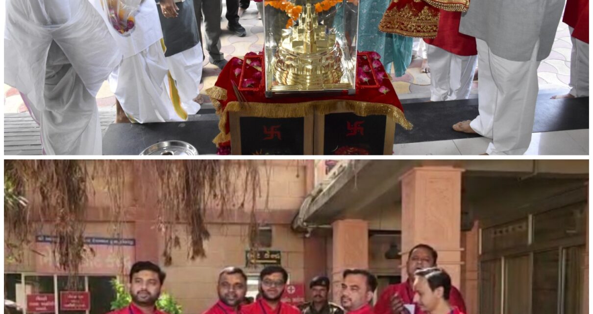 આદ્યશક્તિ માં અંબાના ધામ અંબાજી ખાતે આવનારા સમયમાં વિશ્વનું સૌથી મોટું શ્રી યંત્ર સ્થાપિત થવા જઇ રહ્યું છે જેનું નિર્માણકાર્ય જય ભોલે ગ્રુપ અમદાવાદના દીપેશભાઈ પટેલ દ્વારા કરવામાં આવી રહ્યું છે. શ્રી યંત્રનું નિર્માણ નિર્વિઘ્ને પૂર્ણ થાય એ હેતુસર દીપેશભાઈ પટેલ અને જય ભોલે ગ્રુપ અમદાવાદના સભ્યો દ્વારા શ્રી યંત્રની પ્રતિકૃતિ સમાન મેરુ શ્રી યંત્ર સાથે ચારધામની યાત્રાનો આજે અંબાજી ખાતેથી પ્રારંભ થનાર છે. એમની યાત્રા નિર્વિઘ્ને પૂર્ણ થાય એ માટે બનાસકાંઠા જિલ્લા કલેક્ટર શ્રી વરૂણ બરનવાલે આજે વહેલી સવારે પાલનપુર કલેક્ટર કચેરી ખાતે મેરુ શ્રી યંત્રની પૂજા અર્ચના કરી જય ભોલે ગ્રુપ અમદાવાદની ચારધામ યાત્રાને લીલીઝંડી આપી પ્રસ્થાન કરાવ્યું હતું.