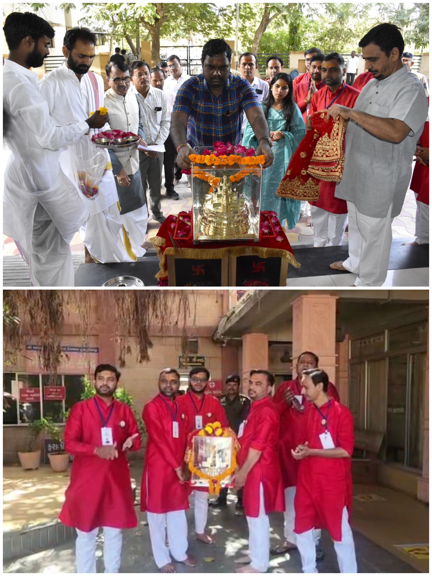 આદ્યશક્તિ માં અંબાના ધામ અંબાજી ખાતે આવનારા સમયમાં વિશ્વનું સૌથી મોટું શ્રી યંત્ર સ્થાપિત થવા જઇ રહ્યું છે જેનું નિર્માણકાર્ય જય ભોલે ગ્રુપ અમદાવાદના દીપેશભાઈ પટેલ દ્વારા કરવામાં આવી રહ્યું છે. શ્રી યંત્રનું નિર્માણ નિર્વિઘ્ને પૂર્ણ થાય એ હેતુસર દીપેશભાઈ પટેલ અને જય ભોલે ગ્રુપ અમદાવાદના સભ્યો દ્વારા શ્રી યંત્રની પ્રતિકૃતિ સમાન મેરુ શ્રી યંત્ર સાથે ચારધામની યાત્રાનો આજે અંબાજી ખાતેથી પ્રારંભ થનાર છે. એમની યાત્રા નિર્વિઘ્ને પૂર્ણ થાય એ માટે બનાસકાંઠા જિલ્લા કલેક્ટર શ્રી વરૂણ બરનવાલે આજે વહેલી સવારે પાલનપુર કલેક્ટર કચેરી ખાતે મેરુ શ્રી યંત્રની પૂજા અર્ચના કરી જય ભોલે ગ્રુપ અમદાવાદની ચારધામ યાત્રાને લીલીઝંડી આપી પ્રસ્થાન કરાવ્યું હતું.