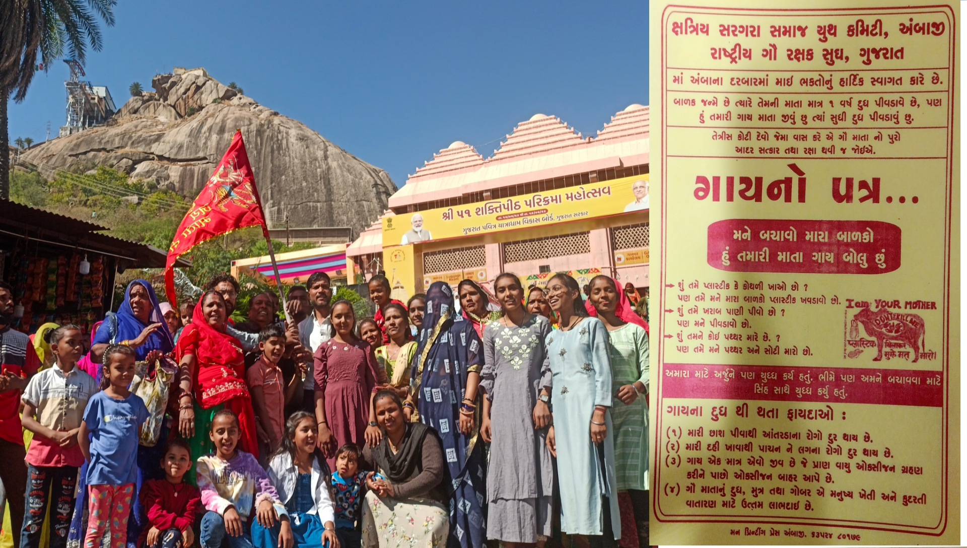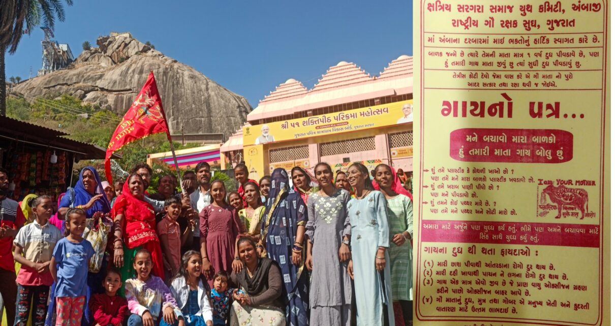 યાત્રાધામ અંબાજી ગબ્બર ખાતે 51 શક્તિપીઠ પરિક્રમા મહોત્સવના બીજા દિવસે ક્ષત્રિય સરગરા સમાજ યુથ કમિટી, અંબાજી તથા રાષ્ટ્રીય ગૌરક્ષક સંઘ ગુજરાત દ્વારા યાત્રિકોને ગૌ સેવા ના પ્રત્યે જાગૃત કરવામાં આવ્યા