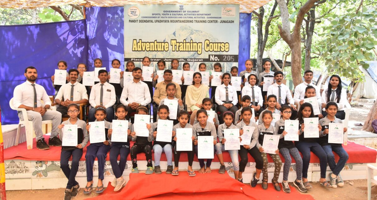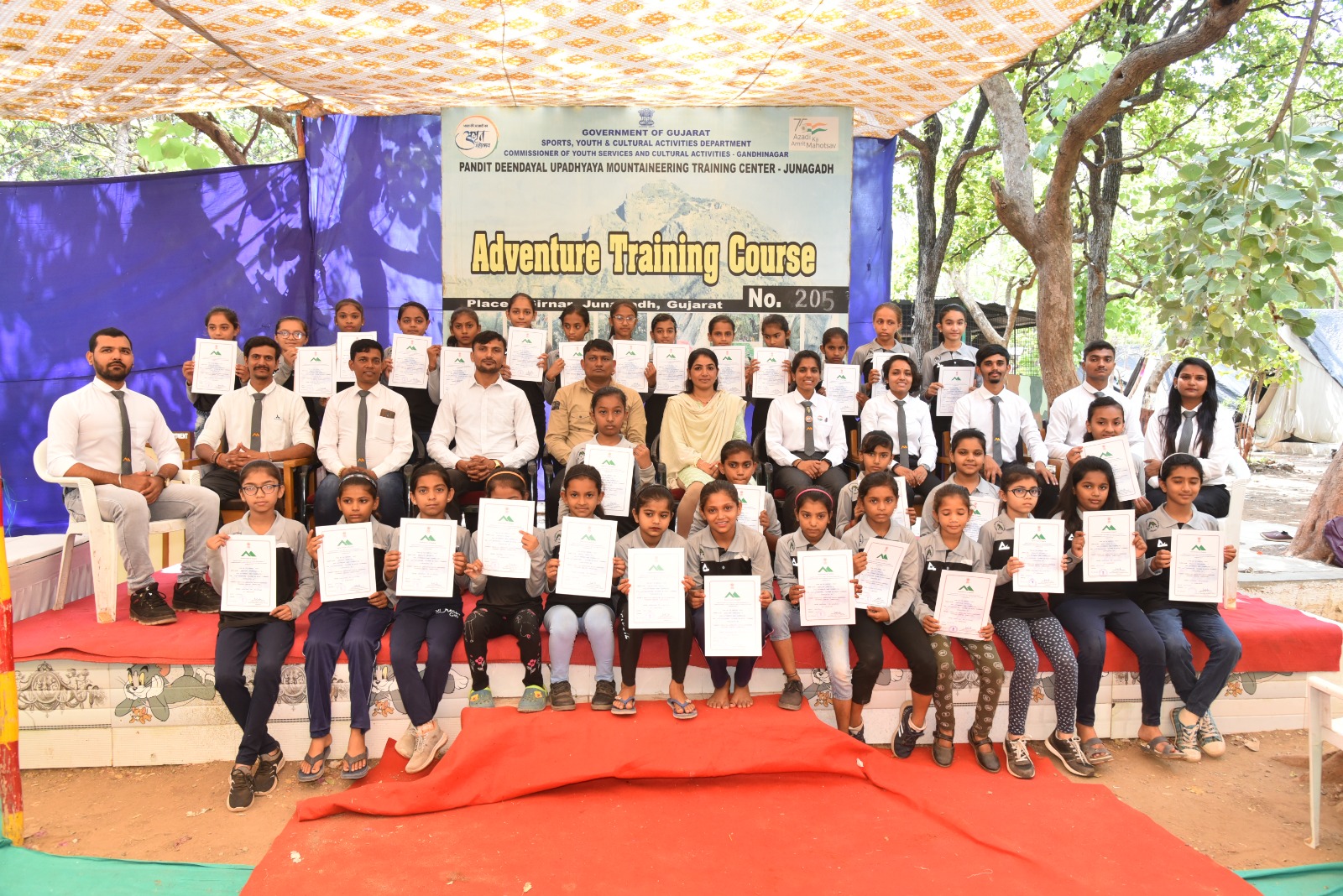 જેમા રાજયભરમાંથી ૧૩ જિલ્લાના ૧૦૨ બાળકો એ ભાગ લીધો હતો. જેમાં તાલીમ, નિવાસ, ભોજન, ગણવેશ ની સુવિધા આપવામાં આવી હતી. આ એડવેન્ચર કોર્સમાં બચુ મકવાણા તલોદ, રણજીતસિંહ ઝાલા ધાંગધ્રા, ચંદુલાલ ઠુંમર જેતપુર, આરતી પરમાર ઝાંઝમેર, મિલાપ સોની વડોદરા, વિવેક ડાભી જસદણ, અર્ચના ચૌહાણ વડોદરા, રિંકલ વઘાસીયા ભાવનગર, યશ નારીયા , વિપુલ કારેણા જુનાગઢ એ માનદ્દ ઈન્સ્ટ્રક્ટર તરીકે સેવા આપેલ હતી . સમાપન કાર્યક્રમમાં એ.એ.ભાલીયા મદદનીશ વન સંરક્ષક ,જૂનાગઢ તથા એન.ડી.વાળા જિલ્લા યુવા વિકાસ અધિકારી જૂનાગઢ ની પ્રેરક ઉપસ્થિતીમાં શિબિરાર્થીઓને પ્રમાણપત્ર આપી સન્માનિત કર્યા હતા. શિબિરાર્થીઓની શારીરિક અને માનસિક રીતે સજ્જ બને તેમની સુષુપ્ત શક્તિઓ બહાર લાવાવામાં આવી સાહસિક શિબિરો ઉપયોગી સાબિત થાય તે માટે સૌ નાના બાળકોને વધુમાં વધુ જોડાય તે માટે અપીલ કરી હતી.