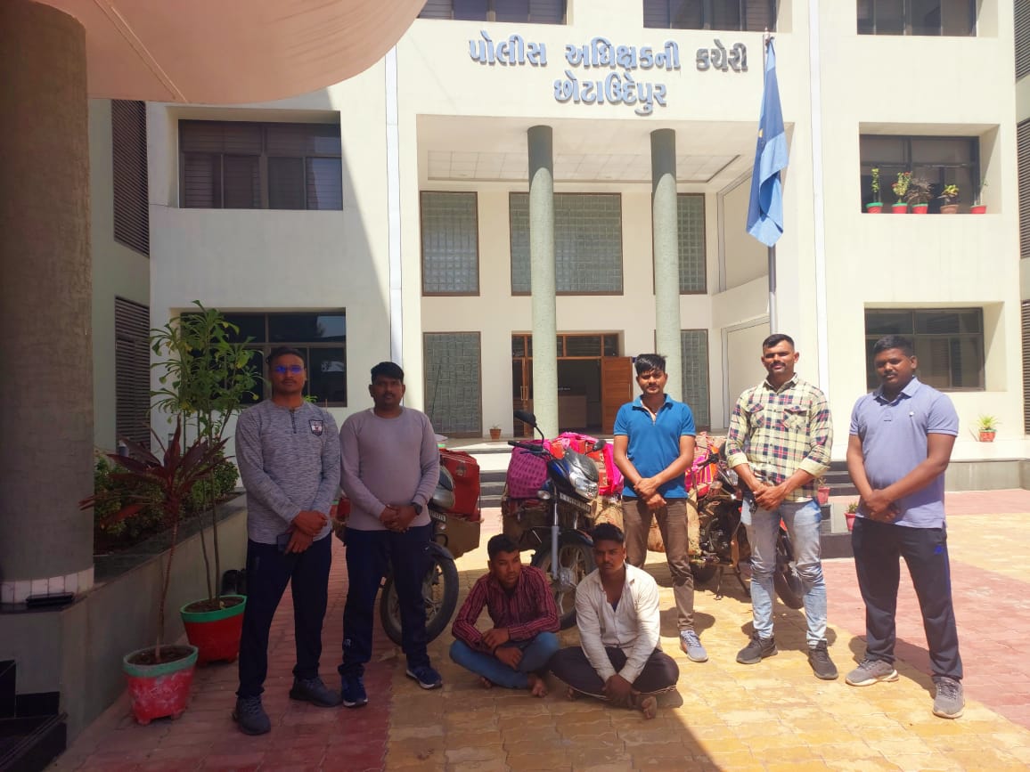 ધર્મેન્દ્ર શર્મા, પોલીસ અધિક્ષક છોટાઉદેપુર નાઓએ સમગ્ર જીલ્લામાં પ્રોહીબીશનની પ્રવૃતિ નેસ્ત-નાબુદ કરવા તેમજ દારૂબંધીના કાયદાનો કડક અમલ થાય તે મુજબ કાર્યવાહી કરવા સારૂ જીલ્લાના તમામ થાણા અધિકારી તથા તમામ શાખા ઇન્ચાર્જ નાઓને સુચના કરેલ જે અન્વયે વી.બી.કોઠીયા પોલીસ ઇન્સ્પેકટર લોકલ ક્રાઇમ બ્રાન્ચ છોટાઉદેપુર નાઓ એલ.સી.બી. સ્ટાફના પોલીસ માણસો સાથે ઝોઝ પોલીસ સ્ટેશન વિસ્તારમાં પ્રોહીવોચ નાકાબંધીમાં હતા તે દરમ્યાન એલ.સી.બી. સ્ટાફના પોલીસ માણસોને ચોક્કસ બાતમી હકીકત મળેલ જે આધારે પ્રોહી વોચ નાકાબંધી કરી મધ્યપ્રદેશ રાજ્યમાંથી જંગલના માર્ગૅ ચોરી છુપી રીતે ગુજરાતમાં લઇ જવાતા ભારતીય બનાવટના વિદેશી દારૂના મુદ્દામાલ સાથે બે ઇસમોને ત્રણ મોટર સાયકલો તથા અન્ય સાધનો સાથે ઝડપી પાડી કુલ કિ.રૂ.૧,૮૦,૯૩૬/- ના મુદ્દામાલ પકડી પાડી ઝોઝ પોલીસ સ્ટેશનમાં અલગ-અલગ ગુનાઓ નોંધાવી કાયદેસરની કાયર્વાહી હાથ ધરવામાં આવેલ છે.