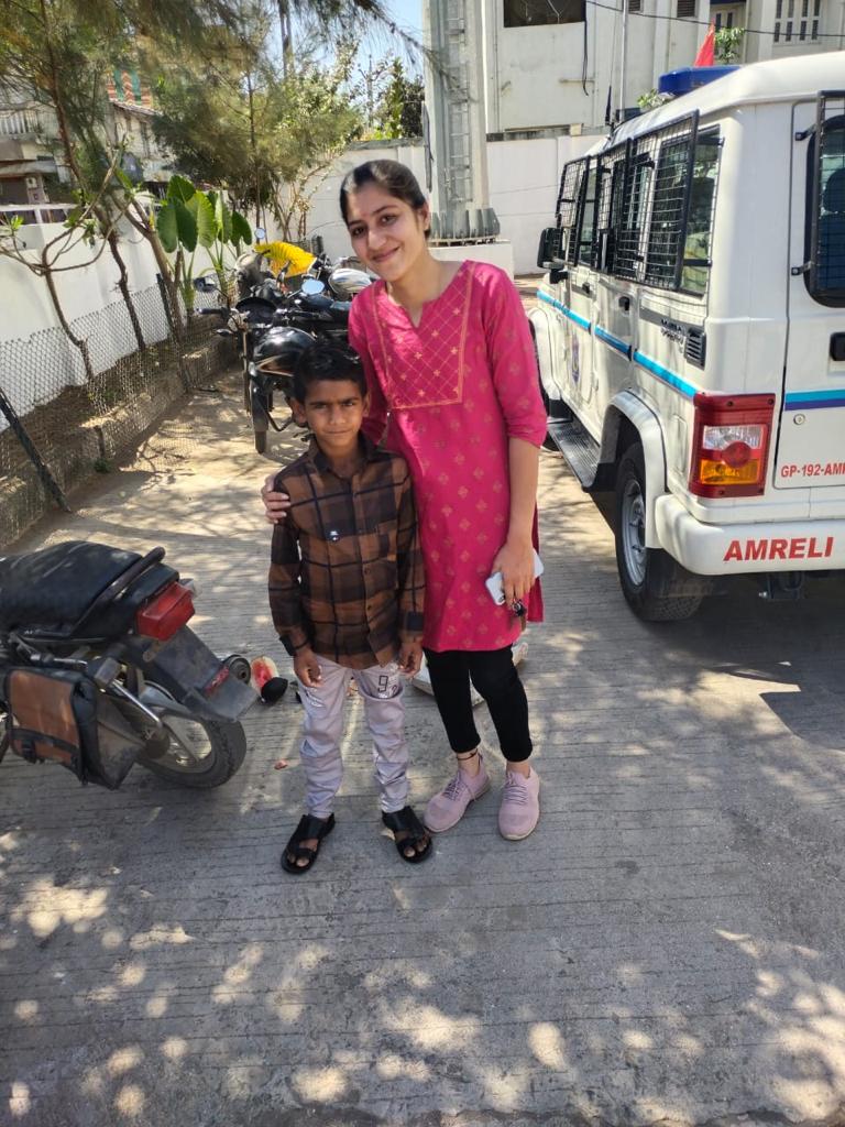રાજુલા પોલીસ સ્ટેશનમાં ફરજ બજાવતા એક મહિલા કર્મચારી કિરણબેન ધાખડા જ્યારે પોલીસ સ્ટેશનમાં હતા ત્યારે તેમની બાઈક પોલીસ સ્ટેશન ની બહાર પાર્કિંગ કરેલ હતી ત્યારે આં બાઈક પર એક બાળક બેઠેલો જોયો ત્યારે બહેને એને ચોકલેટ લેવા 20 રૂપિયા આપ્યા ત્યારે તે બાળકે કહ્યું કે મારે ચપ્પલ લેવા છે તેવું કહેતા બહેને આ બાળક ના પગમાં ચપ્પલના હોવાથી સાથે સાથે તેને એક જોડી કપડા પણ ખરીદી કરીને આપ્યા ત્યારે આ બાળકની ખુશી કંઈક અનેરી જોવા મળી જ્યારે દિવાળીમાં બાળકને ફટાકડા અને નવા કપડા ખરીદી કરી અને જે ખુશી મળે છે તેનાથી બમણી ખુશી આ બાળકના ચહેરા પર જોવા મળી ત્યારે આં બાળકને નાહવા માટેની વ્યવસ્થા પણ રાજુલા પોલીસ સ્ટેશનમાં આ સ્ટાફ દ્વારા કરી આપવામાં આવે ત્યારે ખરેખર પોલીસે પોલીસનું આ કાર્ય ન હોવા છતાં એક માનવતા વાદી કાર્ય કરતા ખરેખર આં બહેનના કાર્યને સમગ્ર સ્ટાફે બિરદાવેલ છે