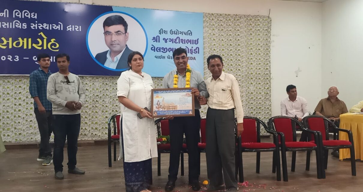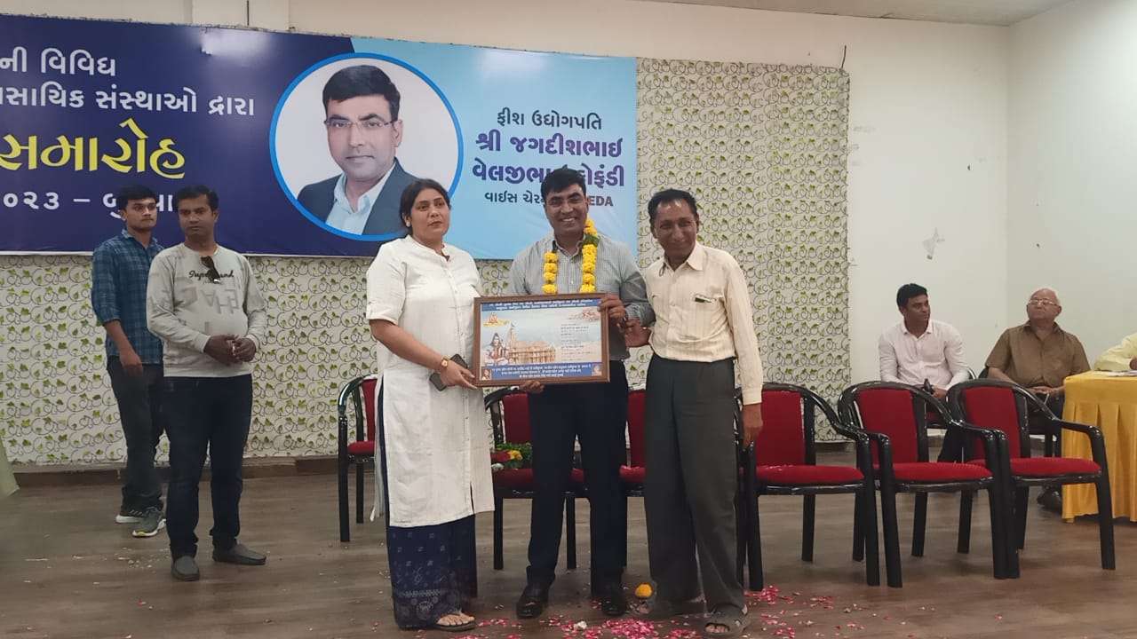 શ્રી જગદીશભાઈ વેલજીભાઈ ફોફંડીએ વેરાવળ શહેર માં અનેક સામાજિક, શૈક્ષણિક, વ્યવસાયિક અને રાજકીય ક્ષત્રે દરેક સમાજને ઉપયોગી થવાના સરળ સ્વભાવ થી વેરાવળનું ગૌરવ વધારેલ હોય અને હાલ તાજેતરમાં ભારત સરકારના વાણિજ્ય વિભાગ હેઠળ કાર્યરત સંસ્થા મરીન પ્રોડક્ટ ડેવલપમેન્ટ ઓથોરિટી (MPEDA) ના વાઇસ ચેરમેન પદે નિમણૂક થતા સમગ્ર ગુજરાત તેમજ ગીર સોમનાથ પંથકની ગરિમા વધારેલ હોય આ તકે વેરાવળ શહેરની વિવિધ સામાજિક, શૈક્ષણિક, વ્યવસાયિક સંસ્થાઓ સ્વ સોની હીરાબેન પ્રભુ દાસ સોની સતીકૂવર મુંબઈ વસઈ સ્થીત રાજેશ્રી મીનાં બેન પંજાબી મીનાં નગી દ્વારા પ્રેરિત પ્રેરણા સેવા સમીતી ના પ્રમુખ શ્રી પાયલ બેન પારેખ અને સોની યોગેશ પી સતીકુંવર રોટરી ક્લબ ઇનનર વ્હીલ ક્લબ પત્રકાર મિત્ર મિતેશ ભાઈ પરમાર નાનજીભાઈ ચાવડા સોની યોગેશ પ્રભુદાસ સતીકુંવર વિશાલ તબોલી શ્યામ ક્ક્કડ દ્વારા પુષ્પ થી સ્વાગત કર્યું હતું તેમજ અન્ય ૮૫ થી વધુ સામાજિક સંસ્થા સમાજ ના પ્રમુખો
