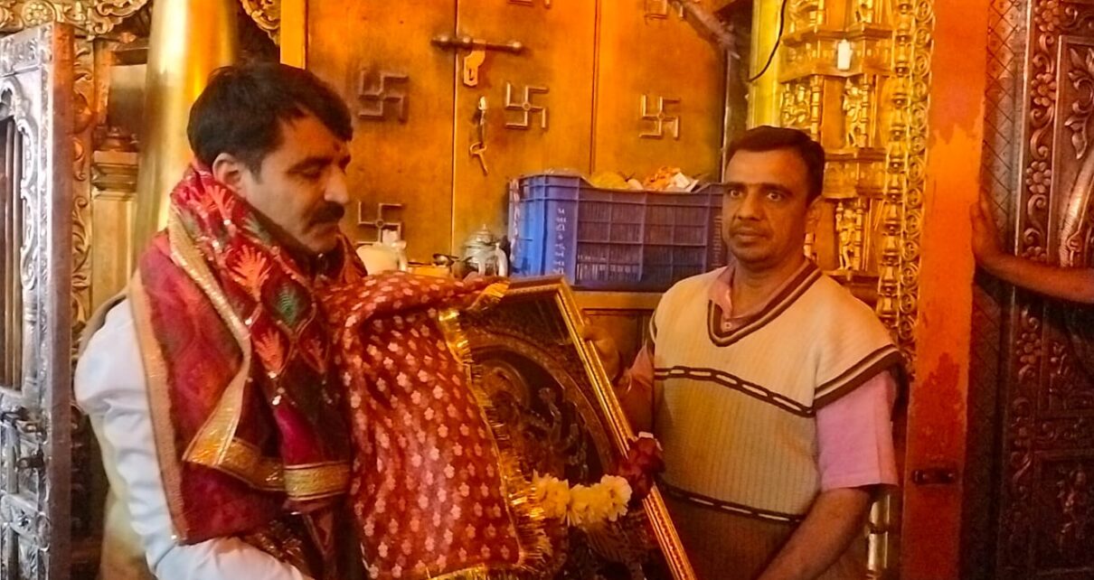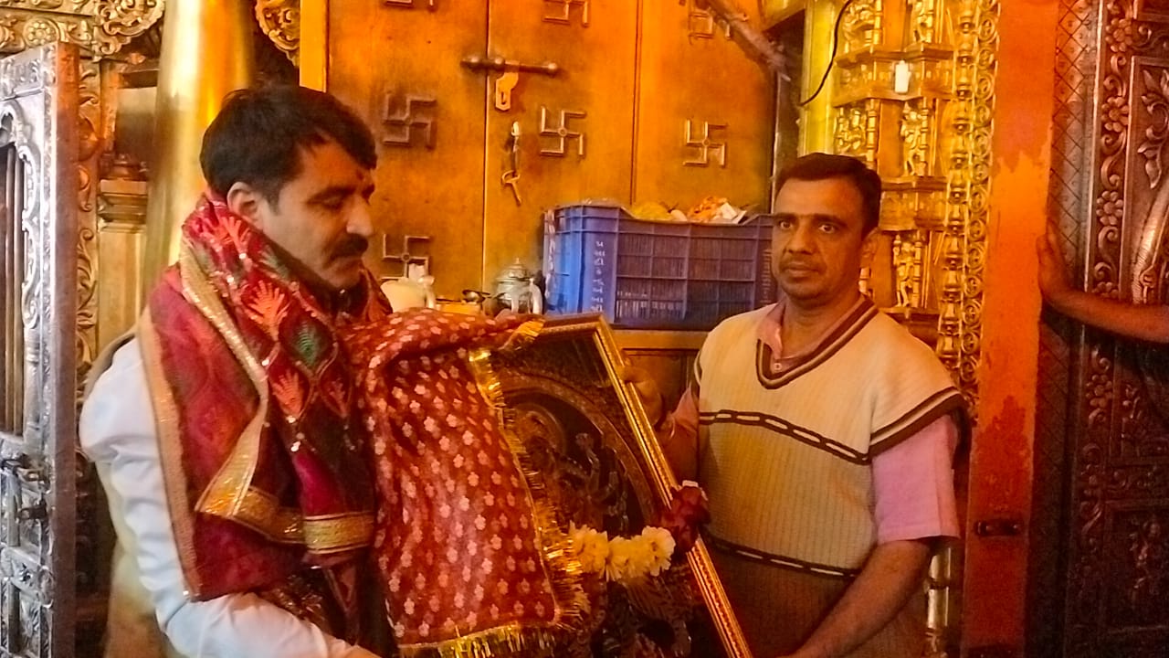 *અંબાજી મંદિરના ગર્ભગૃહમાં માતાજીની વિશેષ પૂજા અર્ચના કરી હતી*