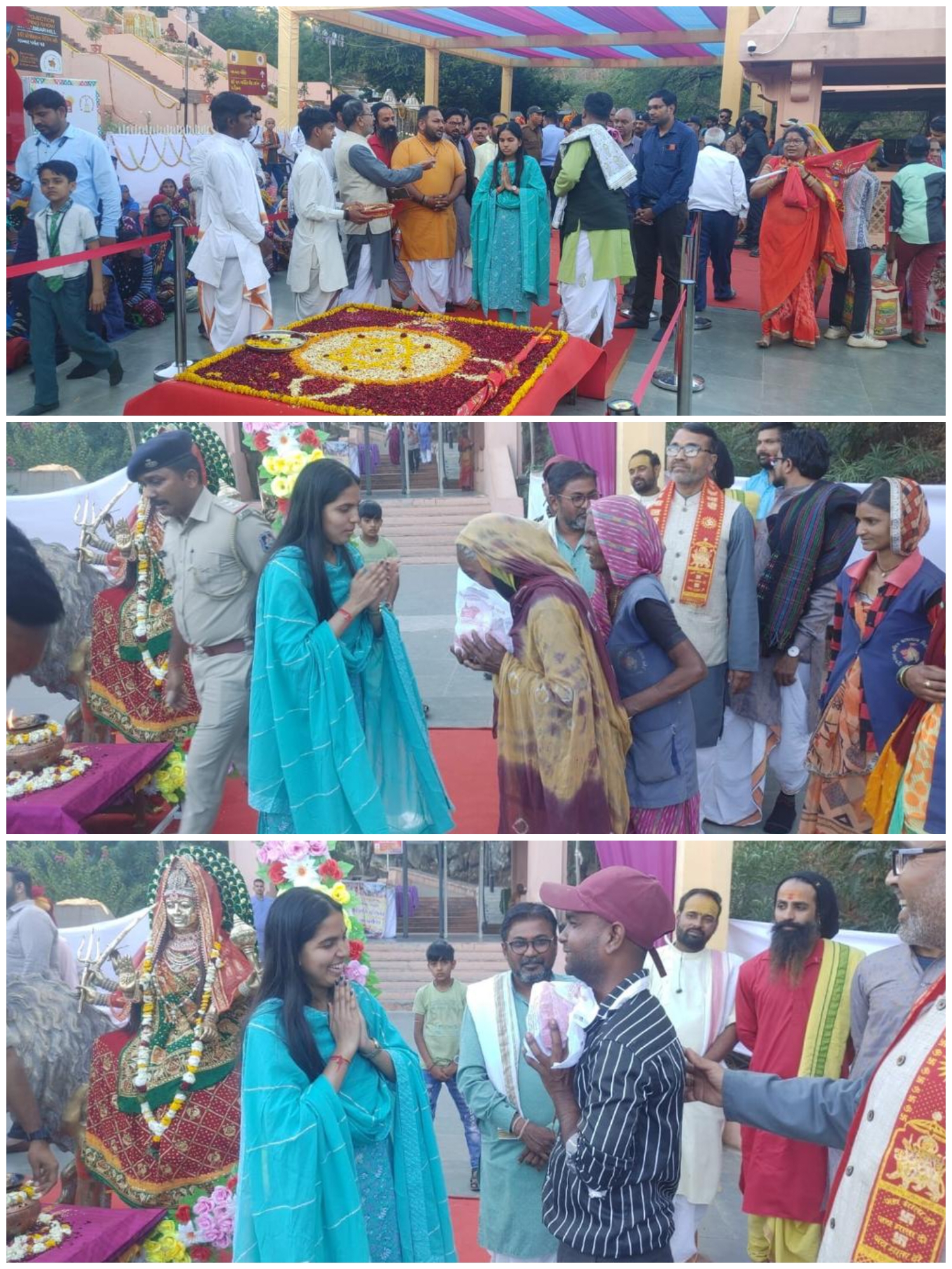 વિશ્વ પ્રસિદ્ધ યાત્રાધામ અને શક્તિપીઠ અંબાજી ખાતે માતાજીની અસીમ કૃપાથી શ્રી ૫૧ શક્તિપીઠ પરિક્રમા મહોત્સવ સુખરૂપ સંપન્ન થતાં ગબ્બર તળેટી પરિક્રમા પ્રવેશ ખાતે માતાજીની પૂજા-અર્ચના કરી મહોત્સવની પૂર્ણાહૂતિ કરવામાં આવી હતી. આ પ્રસંગે પ્રવેશ ચોક ખાતે સમગ્ર પરિક્રમા માર્ગમાં સ્વચ્છતા જાળવનાર સફાઇ કર્મીઓનું માતાજીના પ્રસાદની કીટ આપી સન્માન કરવામાં આવ્યું હતું. તા. ૧૨ મી ફેબ્રુઆરીથી શરૂ થયેલા “શ્રી ૫૧ શક્તિપીઠ પરિક્રમા મહોત્સવ” ના છેલ્લા દિવસે આજે ૧૨ હજાર જેટલાં શ્રધ્ધાળુઓએ પરિક્રમા કરી માતાજીના દર્શન કર્યા હતા. આમ સમગ્ર પરિક્રમા દરમિયાન છેલ્લા છ દિવસમાં કુલ- ૩.૩૧ લાખ યાત્રાળુઓએ શ્રી ૫૧ શક્તિપીઠના દર્શન કરી ધન્યતા અનુભવી હતી. અંબાજી ગબ્બર ખાતે એક જ જગ્યાએ ૫૧ શક્તિપીઠોના દર્શન કરવાનો લ્હાવો મળતા સમગ્ર રાજ્યમાંથી લાખોની સંખ્યામાં યાત્રિકો ઉમટી પડ્યા હતા.