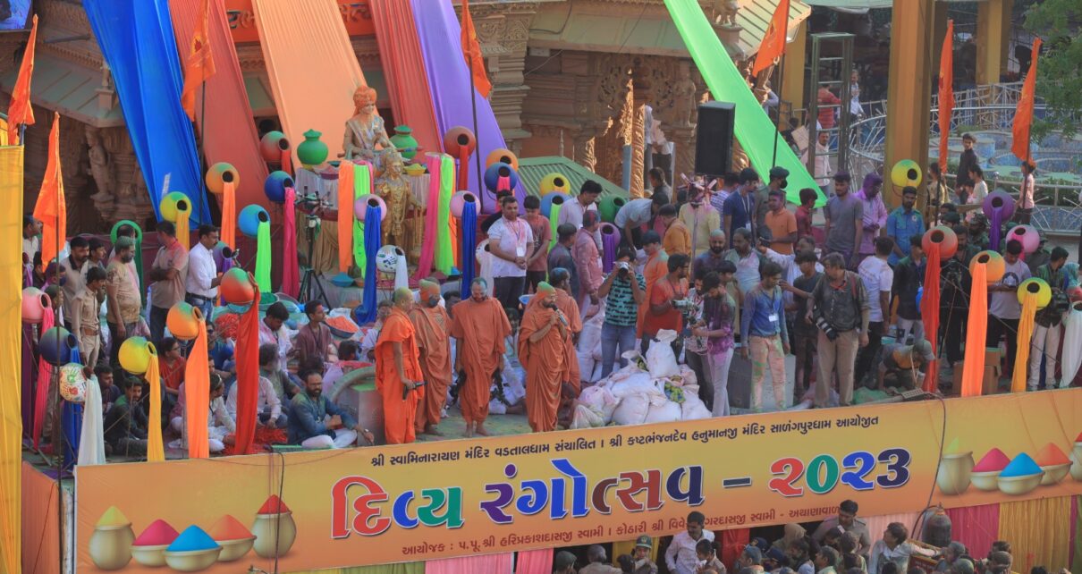 વડતાલધામ દ્વિશતાબ્દી મહોત્સવ એવં શતામૃત મહોત્સવ સાળંગપુરધામ ઉપલક્ષમાં શ્રી સ્વામિનારાયણ મંદિર વડતાલધામ સંચાલિત સુપ્રસિદ્ધ યાત્રાધામ સાળંગપુરધામ શ્રી કષ્ટભંજનદેવ હનુમાનજી મંદિર ખાતે  પ.પૂ.શાસ્ત્રી સ્વામી હરિપ્રકાશદાસજી (અથાણાવાળા)ની પ્રેરણાથી તેમજ કોઠારી વિવેકસાગરદાસજી સ્વામીના માર્ગદર્શનથી હોળી-ધુળેટી પર્વ નિમિત્તે હોળી-ધૂળેટી દિવ્ય રંગોત્સવનું ભવ્ય આયોજન કરવામાં આવ્યું હતું.   શ્રીકષ્ટભંજન દેવ હનુમાનજી મંદિરમાં દરેક તહેવારની હર્ષોલ્લાસ સાથે ઉજવણી કરવામાં આવે છે.