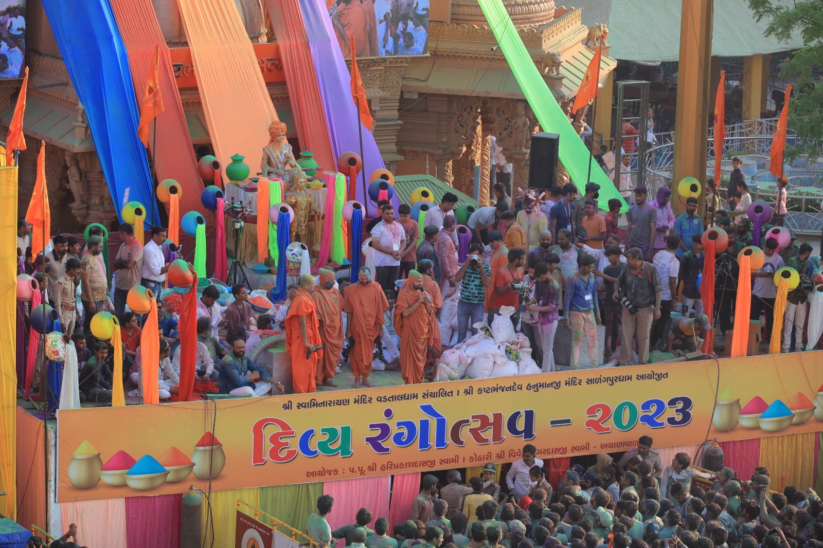10 પ્રકારના 25 હજાર કીલો રંગનો ઉપયોગ કરાયો,ઓર્ગેનિક રંગ ખાસ ઉદયપુરથી મંગાવવામાં આવ્યો હતો,હજારો હરીભક્તો ઉમટી પડ્યા..