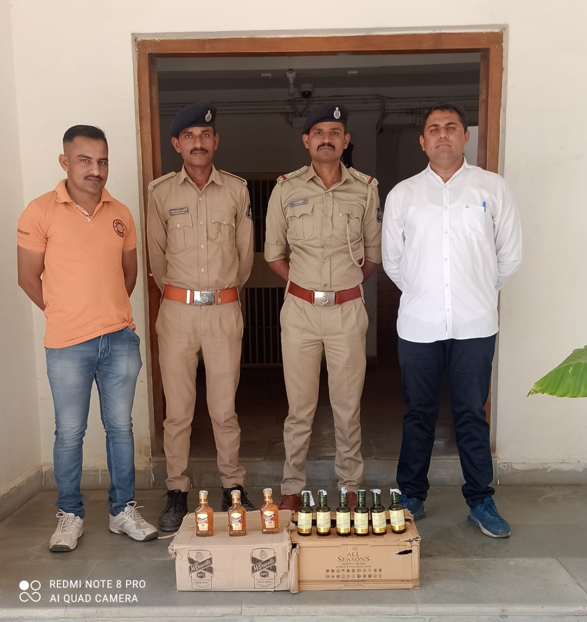 માર્ગદર્શન હેઠળ સાવરકુંડલા ટાઉન પોલીસ સ્ટેશનના પો.સ.ઇ કે.બી.ગઢવી તથા એ.એસ.આઇ હિંગરાજસિંહ પ્રધ્યુમાનસિંહ તથા પો.કોન્સ. જીતુભાઇ ગોબરભાઇ તથા પો કોન્સ. રમેશભાઇ બીજલભાઇ તથા પો કોન્સ ચિંતનકુમાર કનૈયાલાલ દ્વારા સાવરકુંડલા મોમાઇપરા વિસ્તારમા જુના ગાયકડાના રસ્તે રહેતા ભાવેશભાઇ પ્રેમજીભાઇ માના રહેણાક મકાન પાછળ આવેલ મેરડામાંથી બાતમી વાળી જગ્યાએથી ભારતીય બનાવટના પરપ્રાંતની વિદેશી દારૂની બોટલ MCDOWELLS NO-01 COLLECTION WHISKY FOR SALE IN PUNJAB ONLY લખેલ ૧૮૦ એમ.એલ.ની કંપની રીંગપેક કાયની બોટલો નંગ-૪૦ કિ.રૂ.૪૦૦૦/- તથા ભારતીય બનાવટના પરપ્રાંતની વિદેશી દારૂની બોટલ ALL SEASONS GOLDEN COLLECTION RESERVE WHISKY FOR SALE IN PUNJAB લખેલ ૧૮૦ એમ.એલ.ની કંપની રીંગપેક બીટલ નંગ-૪૬ કી.રૂ.૪૬૦૦/- મળી કુલ કી.રૂ.કી.રૂ.૮,૬૦૦/- નો પ્રોહિ મુદામાલનો જથ્થો પકડી પાડી આરોપી ભાવેશભાઇ પ્રેમજીભાઇ મારૂ રહે. મોમાઇપરા વિસ્તારમા જુના ગાધકડાના રસ્તે જી.અમરેલી વાળા વિરુધ્ધ પ્રોહીબીશન એક્ટ મુજબ ધોરણસરની કાર્યવાહી કરવામાં આવેલ છે