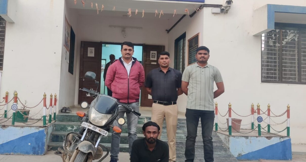 બજાજ પ્લેટીના મોટર સાઇકલ, રજી.નંબર GJ-14-AB-6158, કિં.રૂ.૨૪,૦૦૦/- નો મુદ્દામાલ.