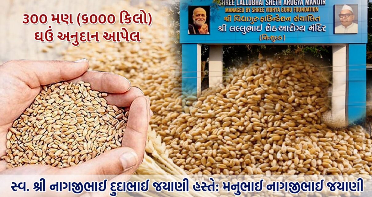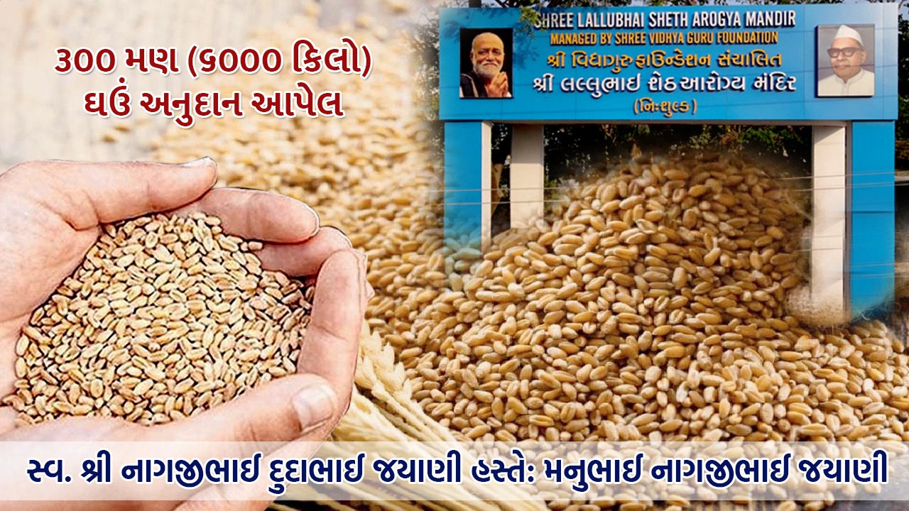 સાવરકુંડલા શહેરમાં આવેલ વિદ્યાગુરુ ફાઉન્ડેશન સંચાલિત શ્રી લલ્લુભાઈ શેઠ આરોગ્ય મંદિર કે જે નિશુલ્ક આરોગ્ય સેવાઓ પ્રદાન કરે છે. આવી લોકકલ્યાણની દર્દીનારાયણની સેવા જોઈને સ્વ. શ્રી નાગજીભાઈ દુદાભાઈ જ્યાણીના સ્મરણાર્થે હસ્તે મનુભાઈ નાગજીભાઈ જ્યાણી દ્વારા શ્રી લલ્લુભાઈ શેઠ આરોગ્ય મંદિરને ૩૦૦ મણ ઘઉં (૬૦૦૦)કિલો ઘઉં આપવાનો શિવ સંકલ્પ કરેલ છે. આમ ગણીએ તો લલ્લુભાઈ શેઠ આરોગ્ય મંદિર ખાતે આશરે દૈનિક ૧૫૦૦ દર્દીનારાયણની આરોગ્ય લક્ષી સેવા નિશુલ્ક ધોરણે કરવામાં આવે છે