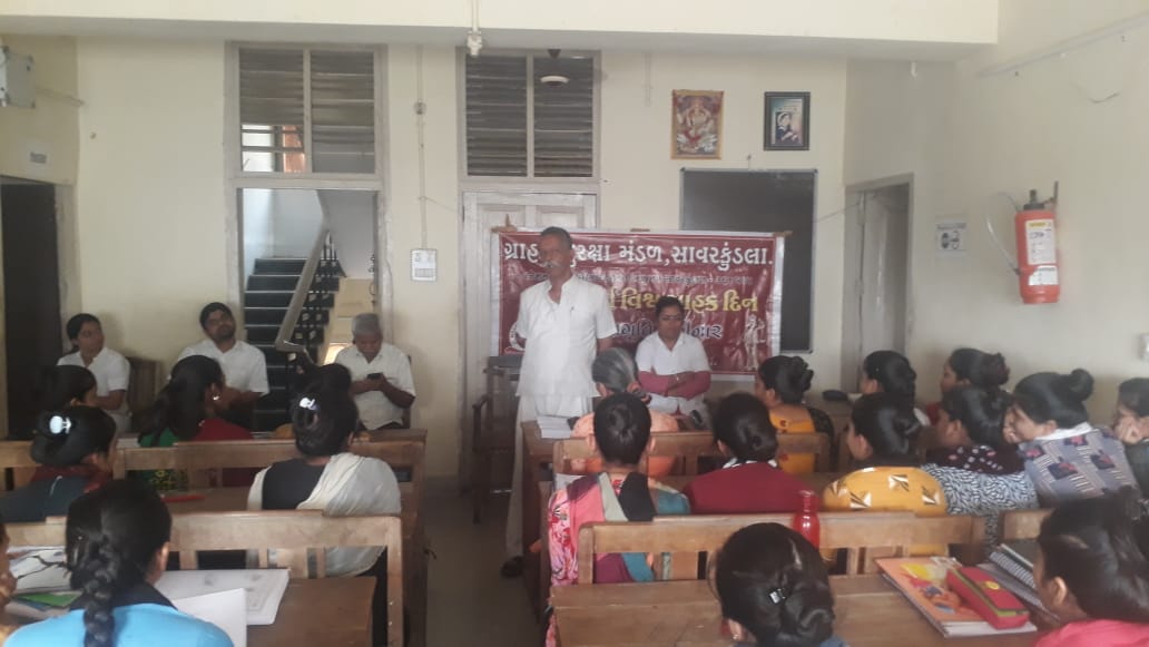 સાવરકુંડલા શહેરમાં ગતરોજ ગ્રાહક સુરક્ષા મંડળ સાવરકુંડલા દ્વારા અહીં આવેલ નર્સિંગ કોલેજમાં વિશ્ર્વ ગ્રાહક દિનની ઉજવણીના ભાગરૂપે ગ્રાહક જાગૃતિ અભિયાન અંતર્ગત સેમિનાર યોજાયો હતો. આ પ્રસંગે સાવરકુંડલા ગ્રાહક સુરક્ષા મંડળના સભ્યો રવિભાઈ મહેતા, બિપીનભાઈ પાંધી અને હર્ષદભાઈ જોશી દ્વારા ઉપસ્થિત તમામ નર્સિંગ કોલેજની વિદ્યાર્થિનીઓને ગ્રાહક સુરક્ષા જાગૃતિ લાવવા માટે વિશદ છણાવટ સાથે વક્તવ્ય આપ્યું હતું. આ ગ્રાહક જાગૃતિ અભિયાનને સફળ બનાવવા નર્સિંગ કોલેજના નર્સિંગ ટયુટર વી. એસ. જોષી, આર. બી. પટેલિયા, એસ. ડી. ગોસાઈ દ્વારા સતત જહેમત ઉઠાવવામાં આવી હતી. સમગ્ર કાર્યક્રમ દરમિયાન ઉપસ્થિત તમામ વકતાઓને આ કોલેજની વિદ્યાર્થિનીઓએ ખૂબ ધ્યાનથી સાંભળ્યા હતાં અને હવે પોતાના જીવનમાં પણ ગ્રાહક સુરક્ષાની રસપ્રદ બાબતો ઉતારી સમાજના અન્ય લોકોને પણ ઉપયોગી થવા માટે નિર્ધાર કર્યો હતો. આ કોલેજના પ્રિન્સિપાલ એસ એ. રાજાણી મેડમની મંજૂરીથી આ સેમિનાર યોજાયો હતો. ઉપસ્થિત તમામ મહાનુભાવોએ પણ ગ્રાહક સુરક્ષા સંબંધિત માહિતીઓ વિશે વિશદ છણાવટ કરી તલસ્પર્શી માહિતી આપી હતી.