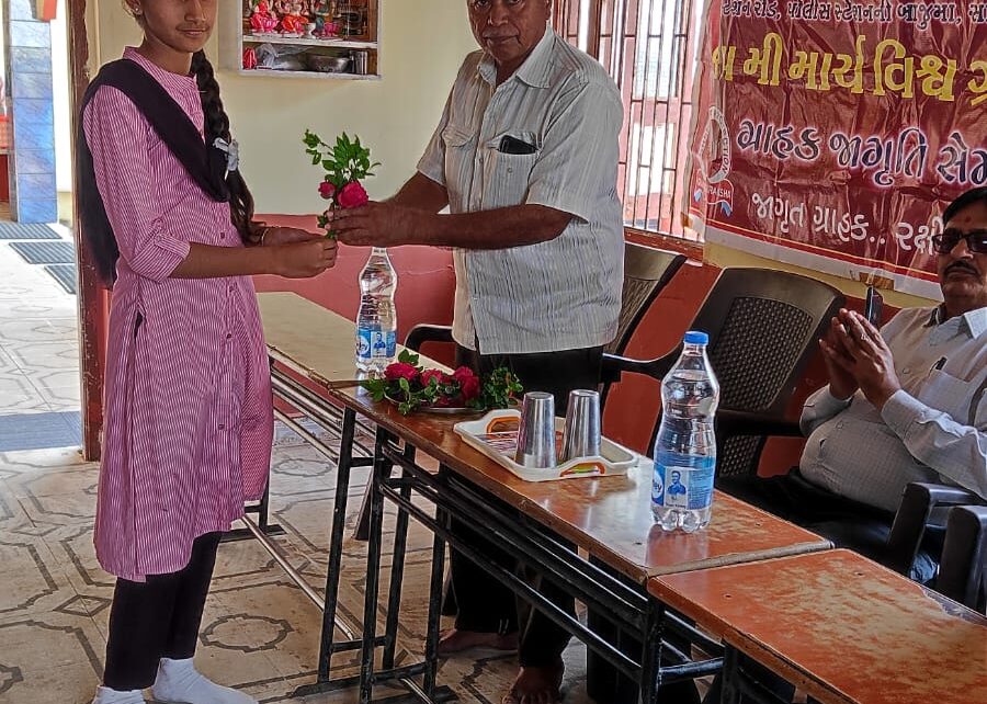૧૫ માર્ચ વિશ્ર્વ ગ્રાહક દિન નિમિત્તે સાવરકુંડલા શહેરમાં આવેલ ગ્રાહક સુરક્ષા મંડળ દ્વારા ગ્રાહક જાગૃતિ અભિયાન અંતર્ગત ગતરોજ તારીખ ૧૩-૩-૨૦૨૩ ના રોજ સાવરકુંડલા શહેરમાં જેસર રોડ પર આવેલ પ્રિયાંશી સ્કૂલમાં ગ્રાહક જાગૃતિ અભિયાન અંતર્ગત સેમિનાર યોજાયો હતો. આ પ્રસંગે સાવરકુંડલા ગ્રાહક સુરક્ષા મંડળના રમેશભાઈ હીરાણી અને બિપીનભાઈ પાંધીએ ઉપસ્થિત શાળાના બાળકોને ગ્રાહક સુરક્ષા કાનૂન સંદભે તલસ્પર્શી માહિતી આપી હતી. શાળાના આસનાની સાહેબ દ્વારા શાળાની પ્રગતિ અંગે માહિતી આપી હતી. શાળાની વિદ્યાર્થીઓએ ઉપસ્થિત ગ્રાહક સુરક્ષા મંડળના સભ્યોનું પુષ્પગુચ્છ અર્પણ કરી હાર્દિક સ્વાગત કર્યું હતું. સમગ્ર સેમિનાર દરમિયાન શાળાના બાળકોએ ખૂબ જ ઉત્સાહજનક વાતાવરણમાં ધ્યાનપૂર્વક વકતાઓને સાંભળીને શાળાની સ્યંમ શિસ્તના દર્શન કરાવ્યા હતા. અંતમાં બાળકોએ ખરીદી સમયે ગ્રાહક સુરક્ષાની વિવિધ બાબતો ધ્યાનમાં લેવાનો નિર્ધાર કર્યો હતો. શાળાના આચાર્યશ્રી તથા શિક્ષકોએ પણ કાર્યક્રમને સફળ બનાવવા માટે ભારે જહેમત ઉઠાવી હતી
