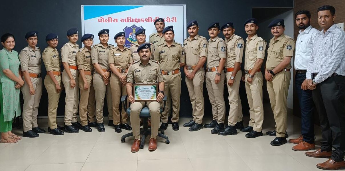 _જૂનાગઢ જીલ્લા પોલીસ અધિક્ષકની કચેરી ખાતે કાર્યરત નેત્રમ શાખા દ્રારા માહે ૧૦/૨૦૨૨ થી માહે ૧૨/૨૦૨૨ દરમ્યાન સીસીટીવી કેમેરાનો ઉપયોગ કરી બનાવનો ભેદ ઉકેલવામાં *ડી.જી.પી. શ્રી વિકાસ સહાય સાહેબના હસ્તે એવોર્ડ મેળવી સમગ્ર ગુજરાત રાજ્યમાં પ્રથમ નંબર મેળવેલ અને જૂનાગઢ પોલીસનુ ગૌરવ વધારતા* નેત્રમ શાખાના પી.એસ.આઇ. પી.એચ.મશરૂ અને તેમની સમગ્ર ટીમને જૂનાગઢ રેંજના *આઈજીપી શ્રી મયંકસિંહ ચાવડા, જૂનાગઢ જીલ્લા પોલીસ વડા ડો. કરણરાજ વાઘેલા તથા જૂનાગઢ હેડ ક્વા. ડી.વાય.એસ.પી. એ.એસ.પટણી, જૂનાગઢ ડીવીઝનના ડી.વાય.એસ.પી. એચ.ડી.ધાંધલીયા, કેશોદ ડી.વાય.એસ.પી. બી.સી.ઠક્કર તથા માંગરોળ ડીવીઝનના ડી.વાય.એસ.પી. ડી.વી.કોડીયાતર દ્રારા પણ અભિનંદન આપવામાં આવેલ છે….*_