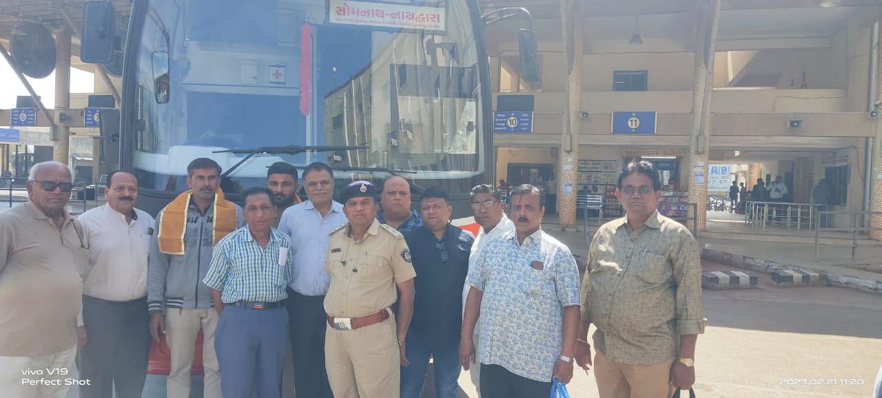 નાનજી ચાવડા , સ્વ સોની હીરાબેન પ્રભુદાસ  સતીકુંવર સેવા સમીતી યોગેશ સતીકુવર તેમજ લોકજાગૃતિ મંચના દિપક ટીલાવત, માધવરાયજી હવેલી ટ્રસ્ટ ના સભ્યો પોપટભાઈ પટેલ , એસટી ડેપોના કમઁચારીઓ સહીત ની ઉપસ્થિતમા લીલીઝંડી આપી આ એસટી બસનો વેરાવળથી પ્રારંભ કરાવ્યો હતો . આ સોમનાથ થી નાથદ્રારા આજથી શરુ થયેલ સ્લીપર કોચ બસ કેશોદ એસટી ડેપોની હોય તે સોમનાથ  11 કલાકે દરરોજ પહોચી જશે ત્યારે 11:15 કલાકે ઉપડશે જે નાથદ્રારા સવારે 4:00 કલાકે પહોચાડશે અને ત્યા 12 કલાક રહ્યા બાદ બપોરે 4:00 કલાકે નાથદ્રારા થી ઉપડશે અને કેશોદ પહોચશે કેશોદથી આ બસના ડ્રાઇવર અને કંડકટર બદલશે અને કેશોદથી લોકલ ભાડાથી ફરી સોમનાથ પહોચશે . સોમનાથ થી નાથદ્રારા નુ ભાડુ માત્ર 427 જેટલુ છે જેથી શિવ થી  શ્રીનાથજી આ બન્ને ધામીઁક સ્થળોને જોડતી સેવા એસટી વિભાગે શરુ કરતા વૈષ્ણવ સંપ્રદાય મા આનંદની લાગણી જોવા મળી છે ..