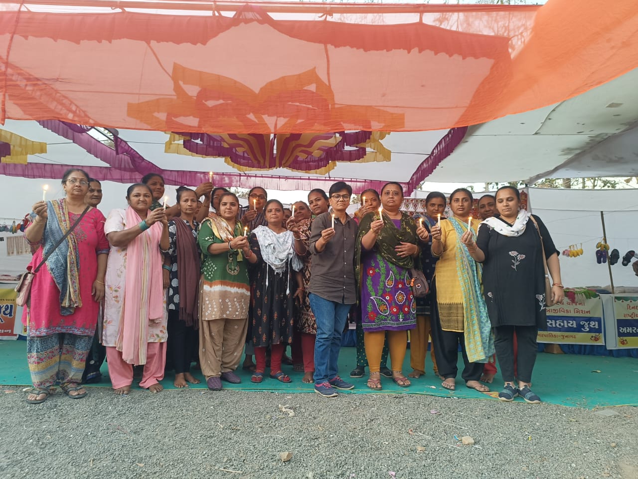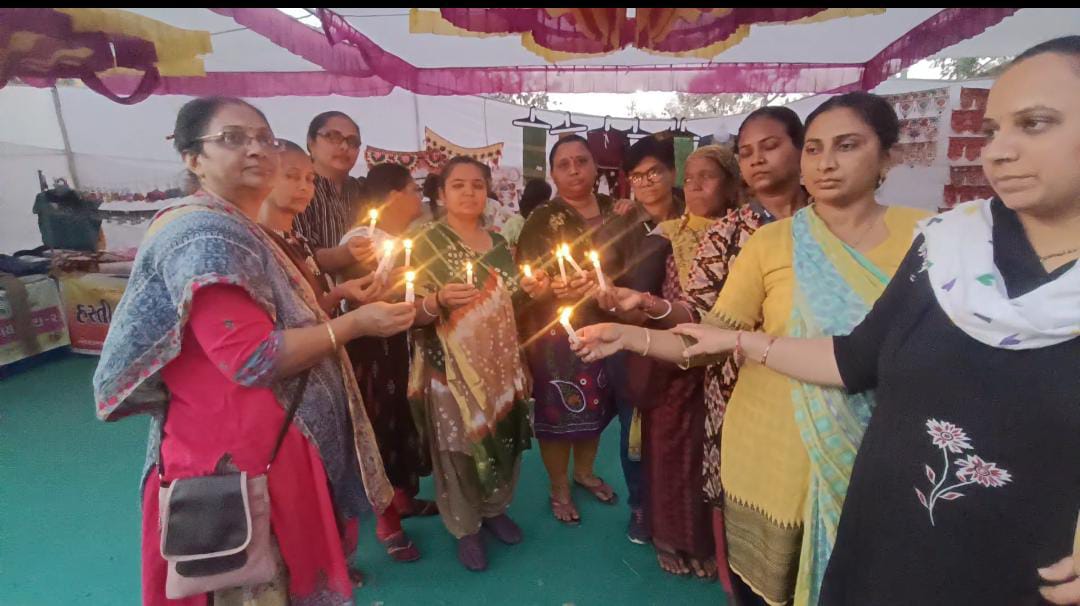 આજ રોજ 14-03-23 ના દિવસે જે પુલવામાં 2019ના રોજ ને હુમલા આપડા 44 વીર શહીદ થયેલા એ આપડા માટે દુઃખ ની વાત છે જેમાં અમે લોકો આજે મહા શિવરાત્રી મેળા પર્વ સખીમંડળ ના વેચાણ માટે સ્ટોલ કરેલ ત્યારે આજે વીર શહીદ માટે શ્રદ્ધાંજલિ નો કાર્યક્રમ કરેલ જેમા જૂનાગઢના સખીમંડળના તમામ બહેનો હાજર રહેલ