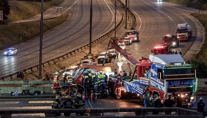 દક્ષિણ આફ્રિકામાં રવિવારે મોડી રાત્રે એક ભયાનક માર્ગ અકસ્માત થયો હતો. મીડિયા રિપોર્ટ્સ અનુસાર આ અકસ્માતમાં ૨૦ લોકોના મોત થયા છે. મૃતકો માઈનિંગ કંપની ડી બીયર્સનાં કર્મચારીઓ હોવાનું કહેવાય છે. દેશના ઉત્તરમાં લિમ્પોપો પ્રાંતના એક પરિવહન અધિકારીએ જણાવ્યું કે બસ દેશની સૌથી મોટી હીરાની ખાણોમાંની એક વેનેશિયા ખાણમાંથી કામદારોને લઈ જઈ રહી હતી. આ દરમિયાન બસ એક ટ્રક સાથે અથડાઈ હતી. વોંગાની ચૌકેએ એએફપીને જણાવ્યું કે આ અકસ્માત ખાણથી લગભગ ૨૫ કિલોમીટર દૂર ઝિમ્બાબ્વેની સરહદ પર આવેલા મુસિઆને ગામમાં થયો હતો.
