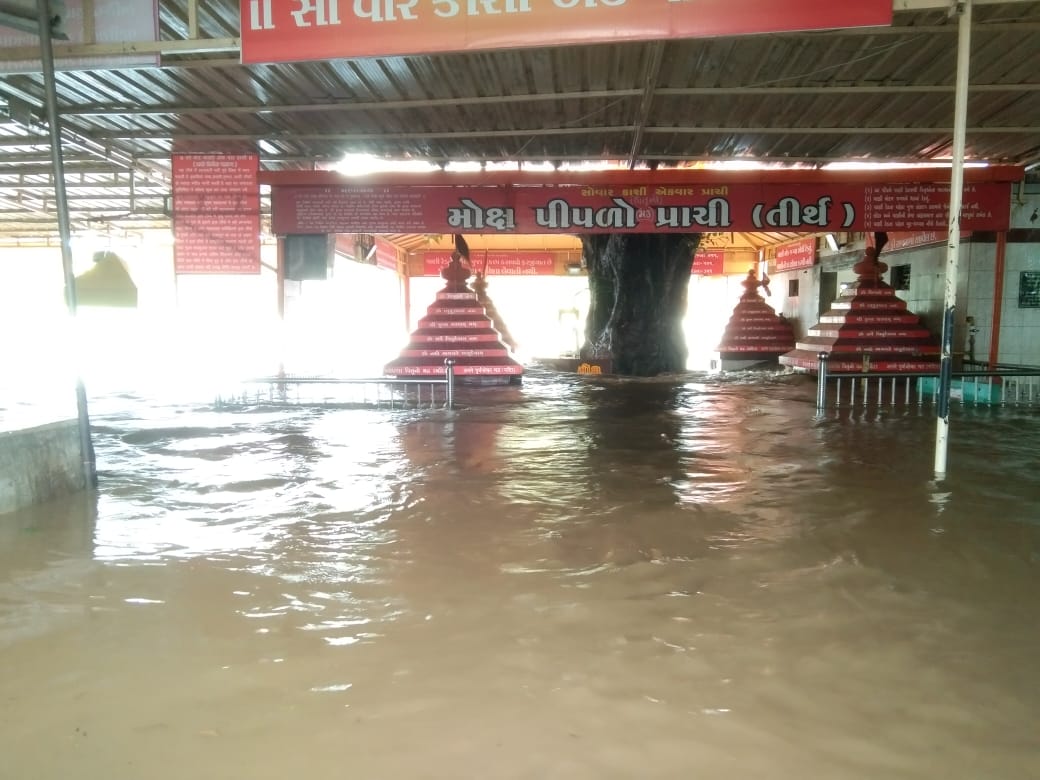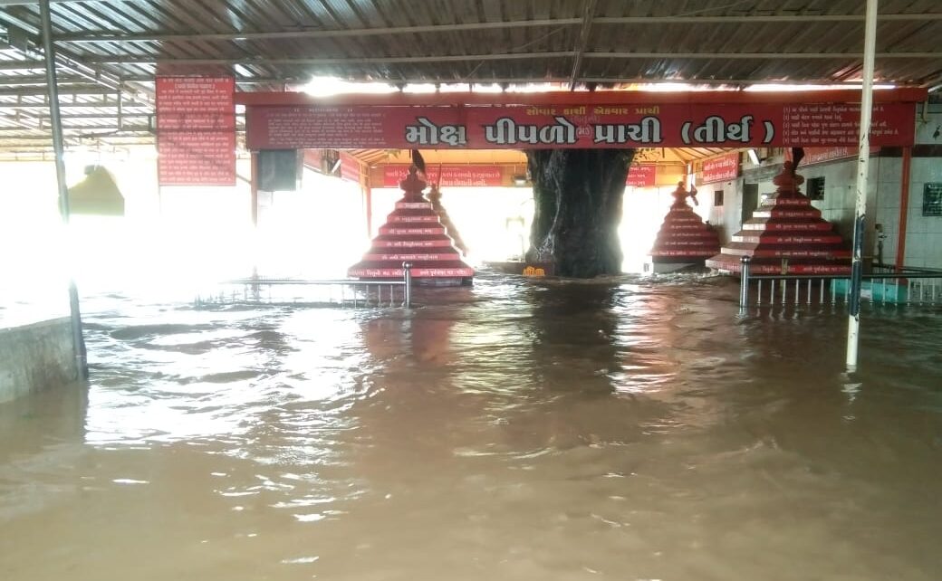 પ્રાચી તીર્થ તેમજ ગ્રામ્ય વિસ્તારોમાં ગત કાલ થીજ મેઘો મંડાતા રોડ રસ્તા તેમજ રહેણાંક વિસ્તારમાં પાણી દોડતા થયા હતા તેમજ ગીર પંથક માં પણ ભારે વરસાદ થી પ્રાચી થી પસાર થતી સરસ્વતી નદી માં ઘોડા પુર જેવી સ્થિતિ સર્જાઈ હતી સરસ્વતી નદી માં ભારે પુર આવતા માધવરાયજી મંદિર સંપૂર્ણ પાણી માં જળમગ્ન થયું હતું તેમજ મોક્ષ પીપળા સુધી સરસ્વતી નદી નું પાણી ફરી વળ્યું હતું તેમજ નીચાણવાળા રહેણાંક વિસ્તારો માં ગોઠણડૂબ પાણી ભરાયા હતા તેમજ ભારે પાણી ના પ્રવાહ થી અનેક ગામડાઓ સંપર્ક વિહોણા થયા હતા