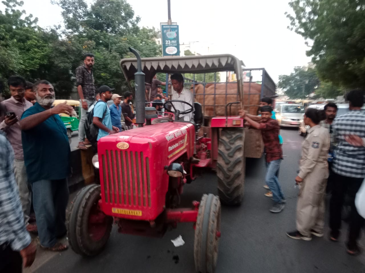 આવ્યો જેએમસી નું ટ્રેક્ટર જીજી હોસ્પિટલ તરફ જતા જામનગર ગૌભક્તો પહોંચી ગયા હતા