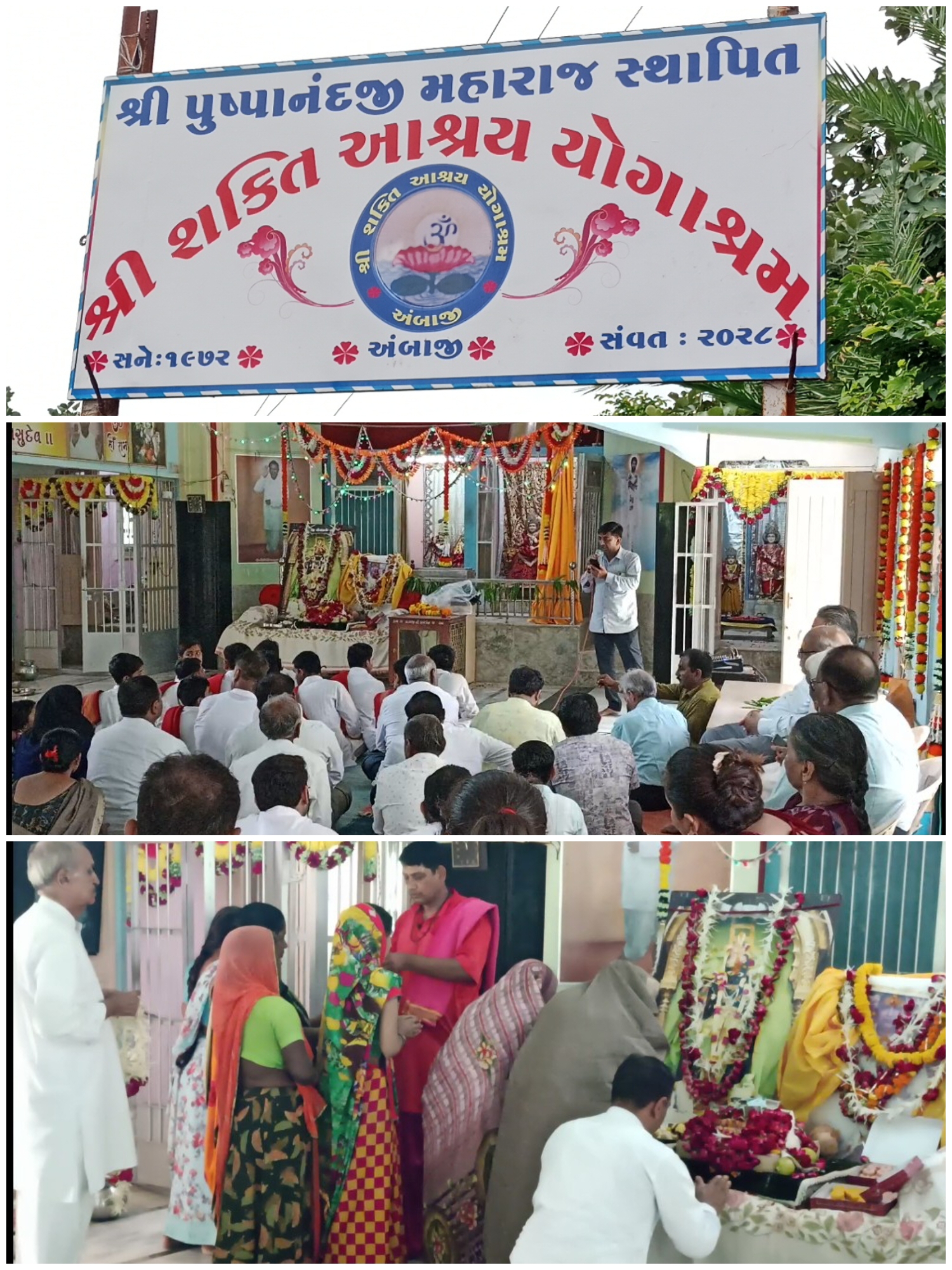 સત્સંગ સભા ગુહ સંત શિરોમણી સતગુરુ શ્રી પુસ્પાનંદજી મહારાજ ના સાનિધ્યમાં ગુરુપૂર્ણિમા ભવ્ય ઉજવણી કરવામાં આવી હતી અને સવારથી જ મોટી સંખ્યામાં શિષ્ય દ્વારા ગુરુ મહારાજનું પૂજન કરવામાં આવ્યું હતું અને યથાશક્તિ ભેટ સદગુરુના ચરણોમાં ભેટ કરવામાં આવી હતી અને સાથે સાથે આરતી નો ભવ્ય આયોજન પણ કરવામાં આવ્યું હતું અને સમગ્ર આશ્રમ નો વાતાવરણ ભક્તિમય બની ગયું હતું જાણે શક્તિ ભક્તિ આસ્થા નું ત્રિવેણી સંગમ આજના દિવસે આશ્રમમાં જોવા મળિયું હતું. સંત શિરોમણી સતગુરુ શ્રી પુસ્પાનંદજી મહારાજ ના અંબાજી ઈડર અને મુંબઈ ખાતે તેમના આશ્રમો આવેલા છે સવથી પ્રથમ અંબાજી માં શ્રી શક્તિ આશ્રય યોગાશ્રય ની અંબાજી શરૂઆત કરવામાં આવી હતી જેમાં મોટાભાગે તેમના શિષ્ય દેશ વિદેશમાં મોટી સંખ્યામાં વસે છે પણ ગુરુપૂર્ણિમાના દિવસે વિશેષ કરી તેમના આશ્રમ ખાતે અંબાજી મુકામે પહોંચે છે આયા આશ્રમ કુદરતી સૌંદર્યાના વચ્ચે લીલોતરીથી ભરપૂર અને એકાંત વાતાવરણમાં જોવા મળે છે યાત્રાધામ અંબાજી દર્શન આપતા યાત્રિકોએ એકવાર અચૂક પણે આ આશ્રમની મુલાકાત લેવી જોઈએ અને આશ્રમમાં ગુરુ મહારાજની મૂર્તિ તથા પાદુકાના દર્શન કરવા જોઈએ.