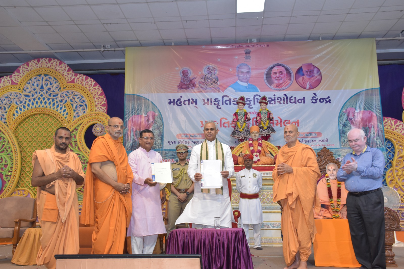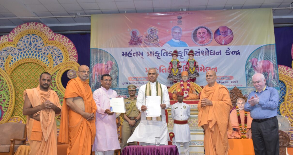 રાજ્યપાલ આચાર્ય દેવવ્રતજીના અધ્યક્ષસ્થાને બોટાદ જીલ્લાના સાળંગપુરના બી.એ.પી.એસ.મંદિરના સભાખંડ ખાતે મહંતમ્ પ્રાકૃતિક કૃષિ સંશોધન કેન્દ્ર દ્વારા પ્રાકૃતિક કૃષિ સંમેલન યોજાયું હતું.