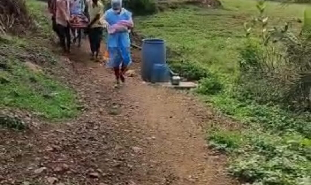 1 K.M. ડુંગરાળ વિસ્તારમાં અંબાજી ૧૦૮ ની ટીમ દ્વારા ચાલીને સફળ પ્રસુતિ કરાવી