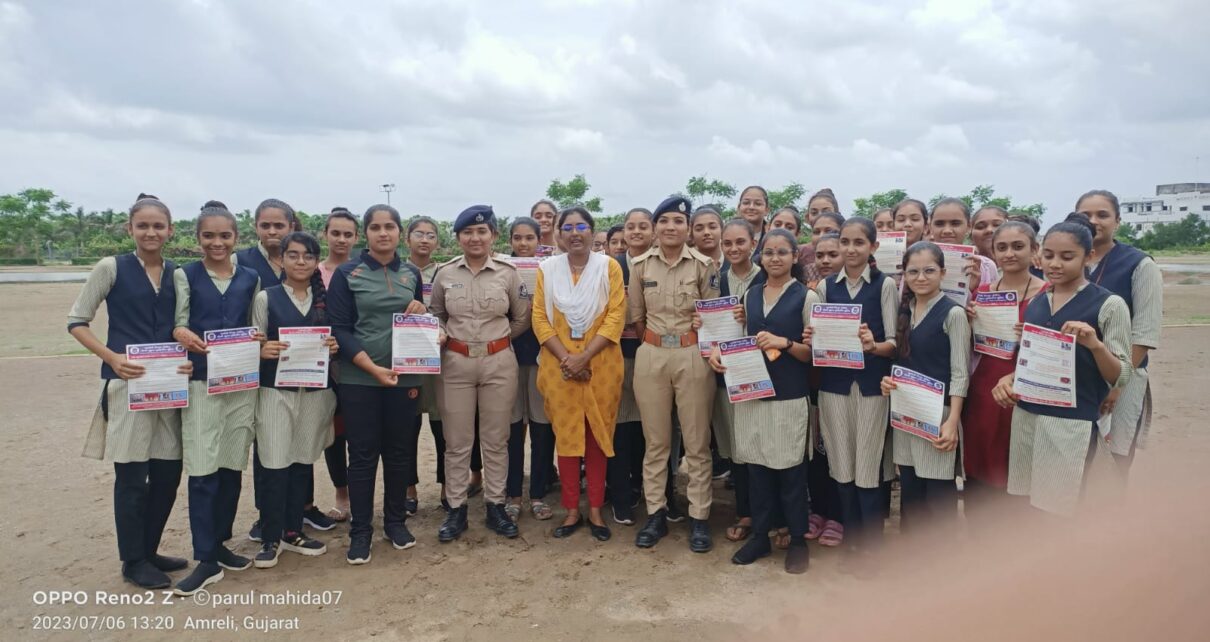 અમરેલી વિદ્યાસભા ખાતે NCCનો Combined Annual Training Camp-3માં એન.સી.સી.ની કૅડેટને મહિલા કોન્સ્ટેબલ પ્રિયાબેન બગડા અને નીતાબેન કંડોડીયા દ્વારા હ્યુમન ટ્રાફિકિંગ યુનિટ બનાવવાનો હેતુ તેની કામગરી વિશે વિસ્તારથી માહિતી આપવામાં આવી હતી તથા પોલીસ સ્ટેશન બેઇઝડ સપોર્ટ સેન્ટર ના કાઉન્સેલર પારુલબેન માહિડા દ્રારા પોલીસ સ્ટેશન બેઇઝડ સપોર્ટ સેન્ટર દ્રારા મહિલાઓને મળતી મદદ અને કામગીરી, મહિલા લગત કાયદાઓ,સાયબર ક્રાઈમ, 181 મહિલા હેલ્પલાઈનની મદદ કેવા સંજોગોમાં લઇ શકાય અને કોણ મદદ લઇ શકે. સખી વન સ્ટોપ સેન્ટર કામગીરી, મહિલા પોલીસ સ્ટેશન વગેરે મહિલાઓ અને દીકરીઓને મદદરૂપ થતા સરકારના વિવિધ માળખાઓ અંગેની વિસ્તૃત માહિતી આપવામાં આવી ઉપરાંત મહિલા અને બાળ વિકાસ વિભાગની મહિલા લગત યોજનાઓ અંગે પણ માહિતી આપી હતી.સાથે સાથે કેડેટ્સને વધતા જતા દીકરીઓ ઉપરના ગુન્હા અને એસિડ એટેક,વગેરે બાબતો વિશે જાણકારી આપી હતી.સાથે કાઉન્સેલર દ્રારા સલાહ,સૂચન અને માર્ગદર્શન આપી દરેક મુશ્કેલ સમયે શાંતિપૂર્વક વિચારી અને જીવનમાં નિર્ણયો લેવા માટે ટકોર કરવામાં આવી અને હાલ પોતાના ઉજ્જવળ ભવિષ્ય બનાવવા અંગે ગંભીર રહેવાની સલાહ પણ આપવામાં આવી હતી આમ અભ્યાસ કરતી દીકરીઓને યોગ્ય માહિતી મળી રહે માટે અલગ અલગ સ્કૂલો કોલેજોમાં કાર્યક્રમો કરવામાં આવે છે કે જેથી વિદ્યાર્થીની પોતાની કે બીજી કોઈ વિદ્યાર્થીનીઓ ઉપર આવેલી મુશ્કેલીનો હિંમતપૂર્વક સામનો કરી અને કોની મદદ લઇ શકાય એ માટે જાગૃત થાય માટે સમજમાં આવા જાગૃતિ કાર્યક્રમો દ્રારા પ્રચાર પ્રસાર દ્રારા મહિલાઓ અને દીકરીઓને સક્ષમ બનાવવામાં મદદરૂપ થઇ શકાય છે.આ કાર્યક્રમ હ્યુમન ટ્રાફિકિંગ યુનિટના પી.આઈ.જે.એમ.કૈલાના માર્ગદર્શન હેઠળ યોજવામાં આવેલ હતો.વિદ્યાર્થીનીઓને યોગ્ય માહિતી આપવામાં આવતા એન.સી.સી.ના સી.ઓ.સાહેબ દ્રારા પ્રશંસા કરવામાં આવી અને તેઓએ સિલ્ડ આપી સન્માનીત પણ કાર્ય હતા.