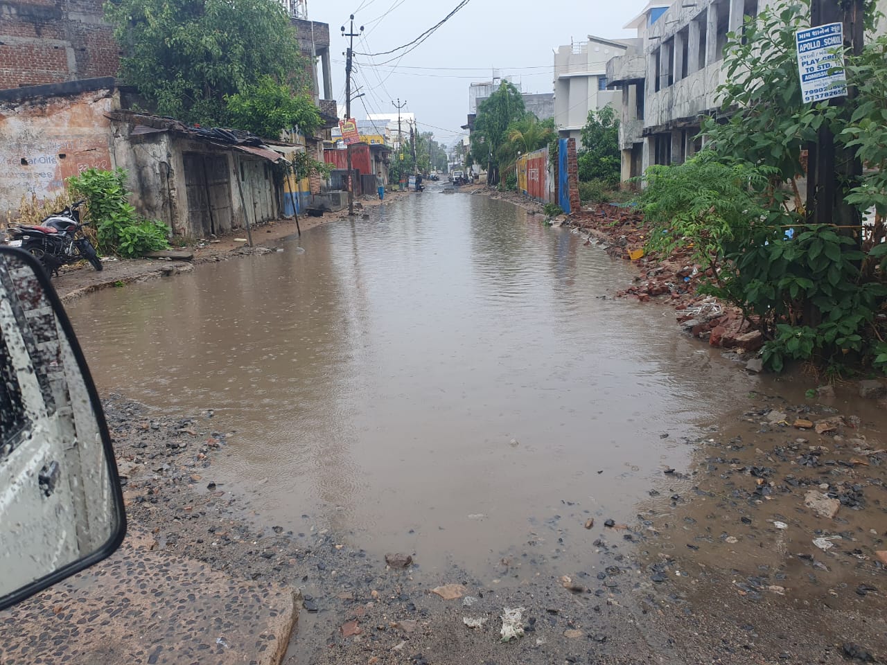 બોડેલીના અલીપુરા વિસ્તાર માં ભરાયા વરસાદી પાણી