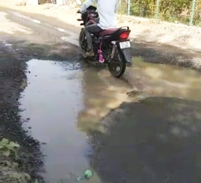 રસ્તા પર પાણીને લીધે મોટો ખાડો પડતા પીડબ્લ્યુડીને રજુઆત કરતાં ઉડાઉ જવાબો અપાયા