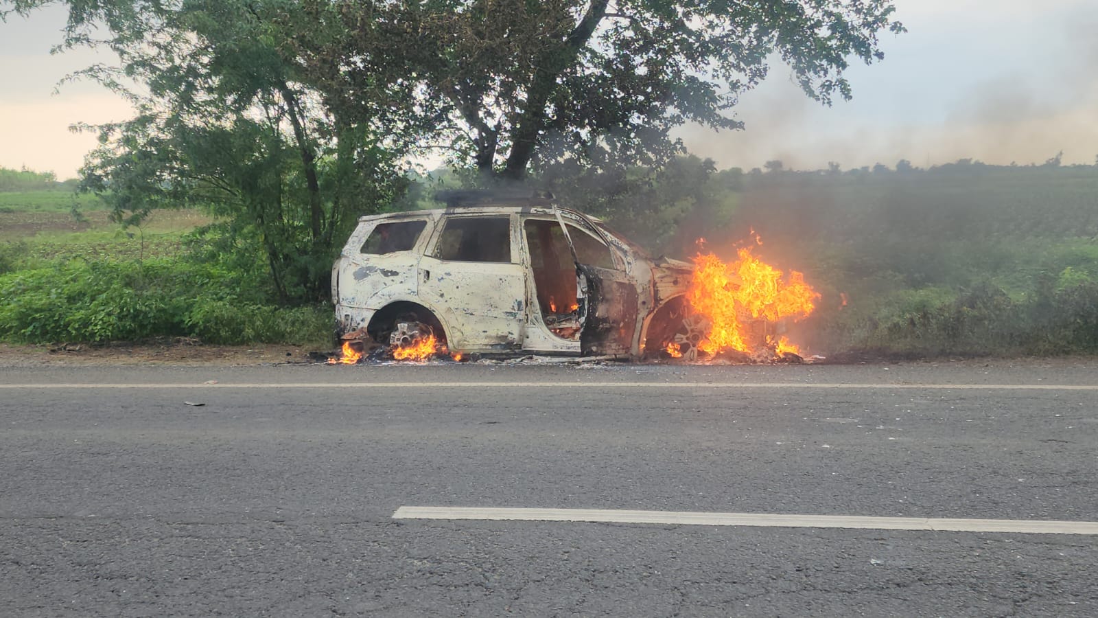 બોડેલી થી વડોદરા જતા હાઈવે પર બોડેલી તાલુકાના સુર્યા ભદ્રાલી પાસે અચાનક ગાડીમાં આગ લાગી હતી સદ્નસીબે કારમાં સવાર લોકોનો બચાવ થયો હતો