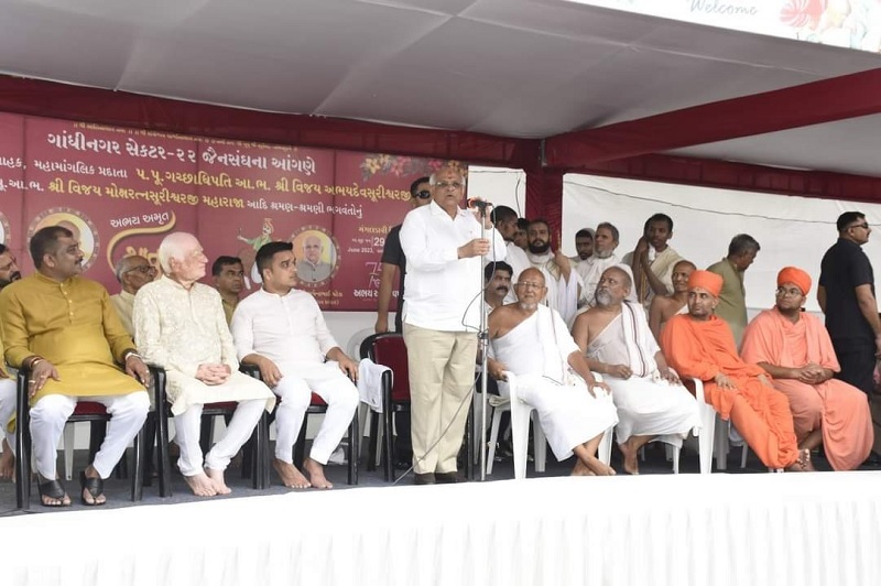 શ્રી ગાંધીનગર જૈન સંઘ દ્વારા આયોજિત અભય અમૃત ચાતુર્માસ પ્રવેશ પ્રસંગમાં મુખ્ય મંત્રી ભૂપેન્દ્ર પટેલ ઉપસ્થિત રહ્યા