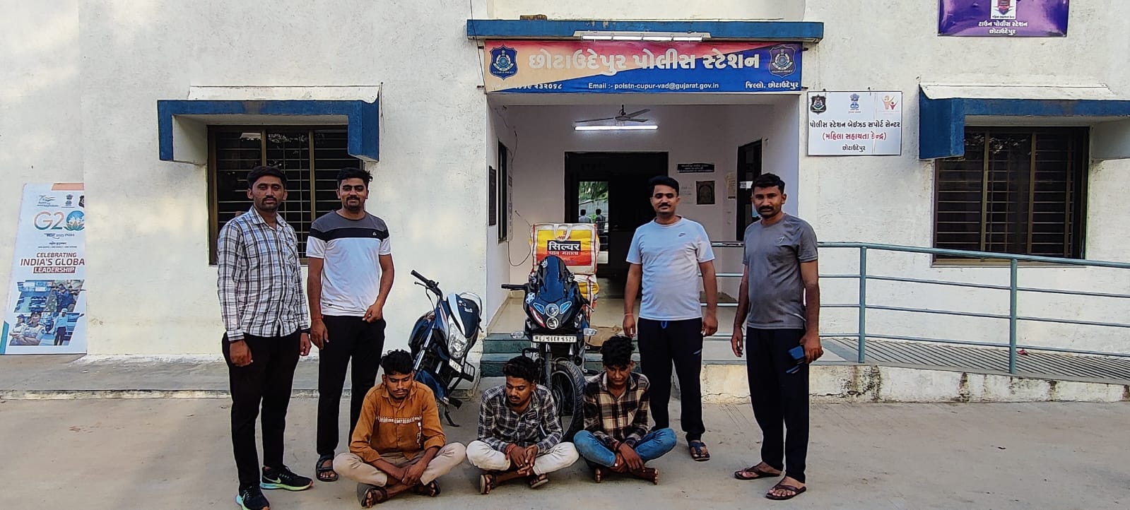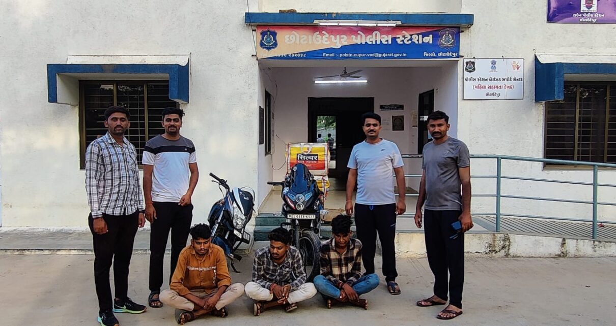 જે અનુરાધાને ડી.કે.રાઠોડ |/C નાયબ પોલીસ અધિક્ષક છોટાઉદેપુર ડિવીઝન છોટાઉદેપુર નાઓના માર્ગદર્શન હેઠળ આજરોજ છોટાઉદેપુર પોલીસ સ્ટેશન પોલીસ ઈન્સ્પેકટર એમ.એન.ચૌહાણ નાઓ સ્ટાફ સાથે છોટાઉદેપુર વિસ્તારમાં પેટ્રોલીંગમા હતા તે દ૨મ્યાન નાઓને અંગત બાતમીદાર દ્વારા બાતમી હકીકત મળેલ કે કાળા કલ૨ની બજાજ કંપનીની પલ્સ૨ ૨૨૦ મોટસાયકલ માં ભારતીય બનાવટનો વિદેશી દારૂ ભરીને આવના૨ છે અને તેની આગળ એક મોટર સાયકલ દારુ ભરેલ મોટર સાયકલનું પાયલોટીંગ કરી આગળ ચાલે છે જે બન્ને મોટર સાયકલ કસા૨ા ગામ તરફ આવના૨ છે.તેવી ચોક્કસ બાતમી આધારે કસારા ગામના ત્રણ રસ્તે વોચ રાખી નાકાબંધી કરતા બાતમી હકિકત વાળી બે મોટરસાયકલ આવતા જણાતા બંન્ને મોટર સાયકલોને કોર્ડન કરી પકડી પાડેલ અને જે પકડાયેલ બંન્ને મોટરસાયકલો પૈકી આગળ ચાલતી મોટરસાયકલ જોતા હીરો કંપનીની ગ્લેમર મોટરસાયકલ જેનો આગળ પાછળ નંબર જોતા GJ-34-D-1445 ની છે તથા પાછળના ભાગે દારુ ભરેલ કાળા કલરની બજાજ કંપનીની પલ્સ૨ મોટ૨સાયકલ જેનો આગળ પાછળ નંબર જોતા GJ-06-ER-6527 મા ભારતીય બનાવટના વિદેશી દારૂ પ્લાસ્ટીકના હોલ નંગ-૩૬ કિ.રૂ.૧૫,૯૪૮/- તથા લંડા પ્રાઇડ પ્રીમીયમ વ્હીસ્કી ૧૮૦ મી.લી ના કાચના કવાટરીયા નંગ- ૯૬ કિ.રૂ ૧૪,૩૦૪/- મળી કુલ બોટલ નંગ-૧૩૨ કુલ કિ.રૂ ૩૦,૨૫૨/- ના મુદામાલ સાથે ગણના પાત્ર કેન્સ શોધી કાઢી કાયદેસરની કાર્યવાહી હાથ