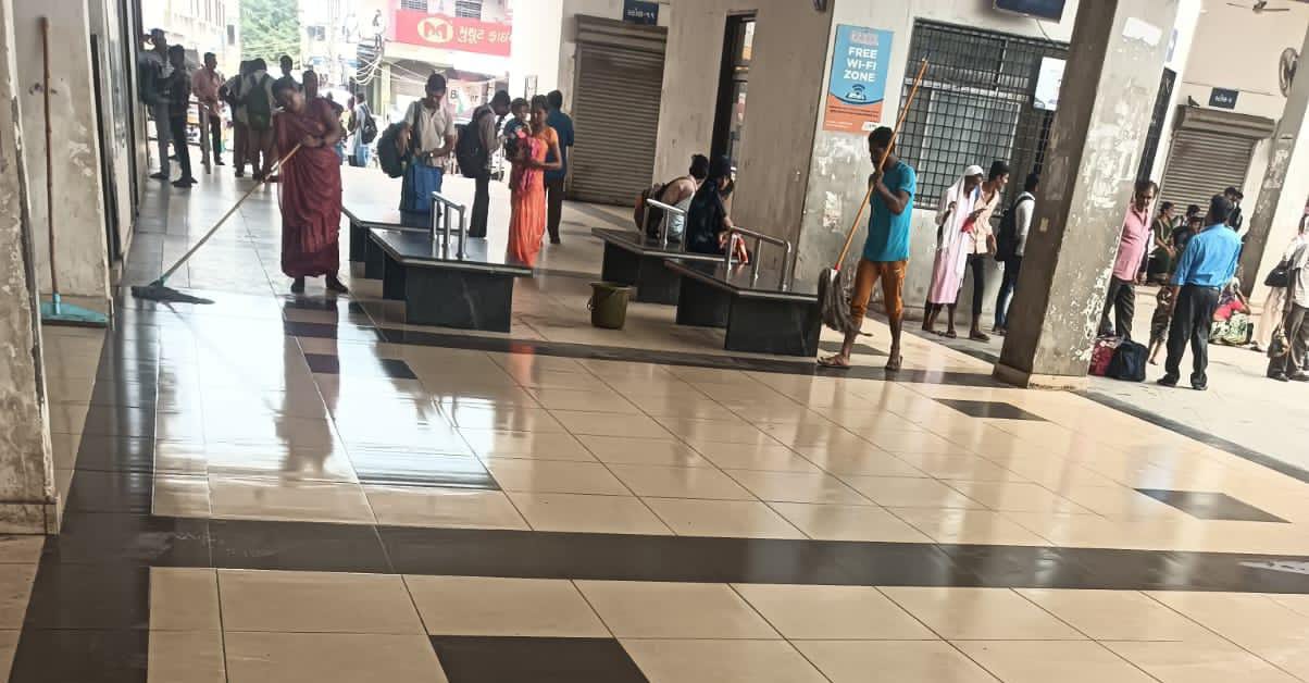 એસ.ટી ડિવિઝન દ્વારા આજે વહેલી સવારથી એસટી ડેપોના સમગ્ર બિલ્ડિંગમાં ઉપરાંત પાકગના સ્થળોએ મોટાપાયે સાફ સફાઇ હાથ ધરવામાં આવી હતી. અને સમગ્ર એસટી પરીસર ને સાફ કરવામાં આવ્યું છે. ઉપરાંત એસટી ડેપોની અંદર આવતી જતી તમામ બસોને વર્કશોપમાં લઈ જઇ સંપૂર્ણપણે ધોવામાં આવી રહી છે. અને મુસાફરોની ચઢઉતર થતી હોવાથી એકબીજા પ્રવાસીઓને કોઈપણ પ્રકારનો ચેપ ન લાગે તે હેતુસર એટીએમમાં સાફ સફાઈ અભિયાન શરૂ કરી દેવાયું છે.
